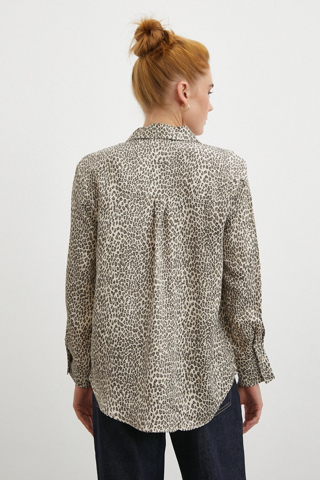 Düğme Detaylı Pamuklu Gömlek Kahve