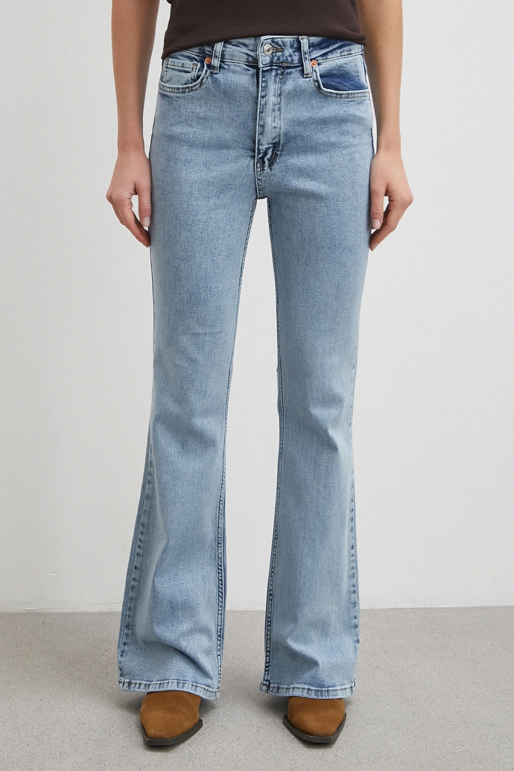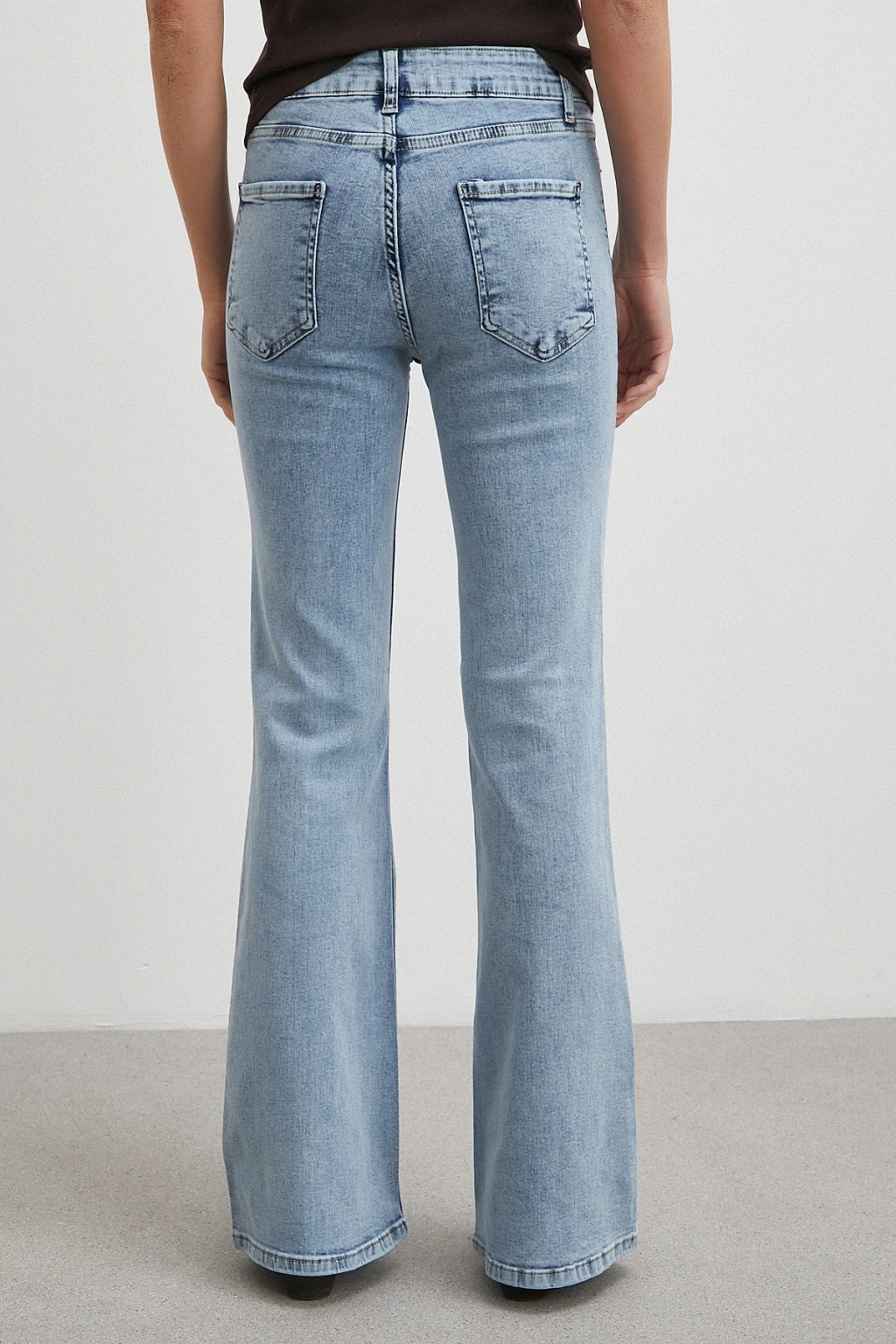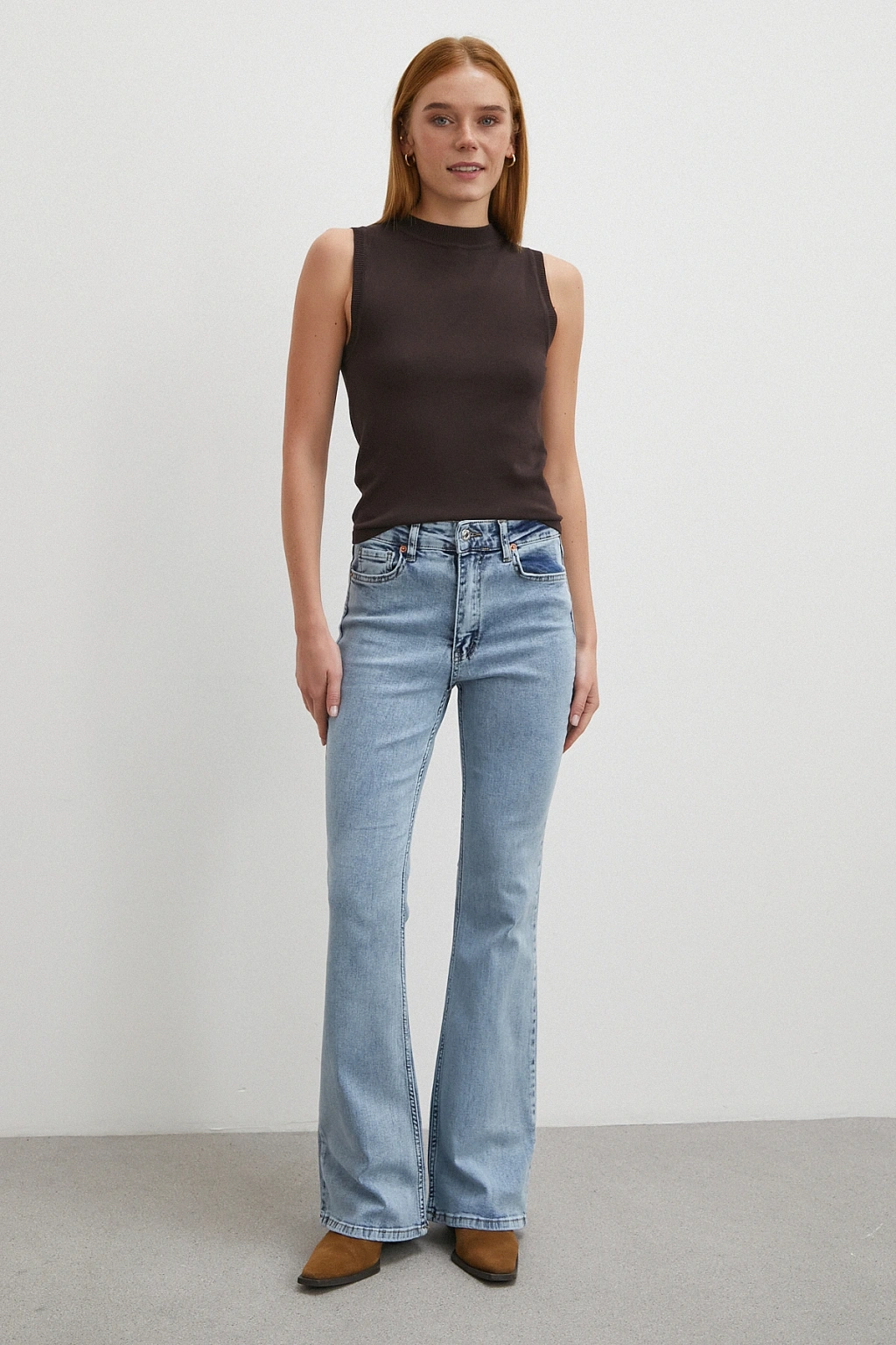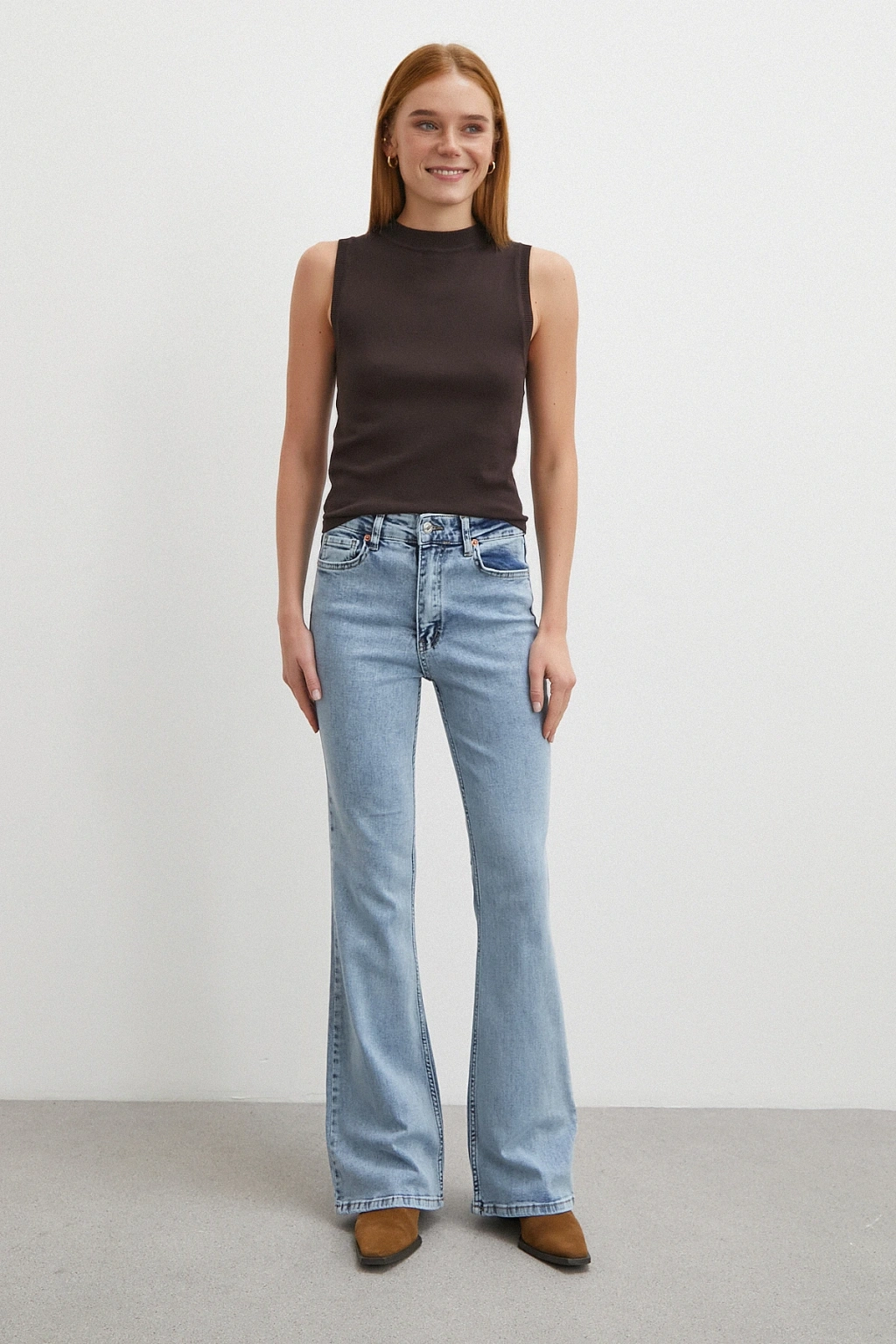 Orta Bel Likralı İspanyol Paça Jean Buz Mavisi