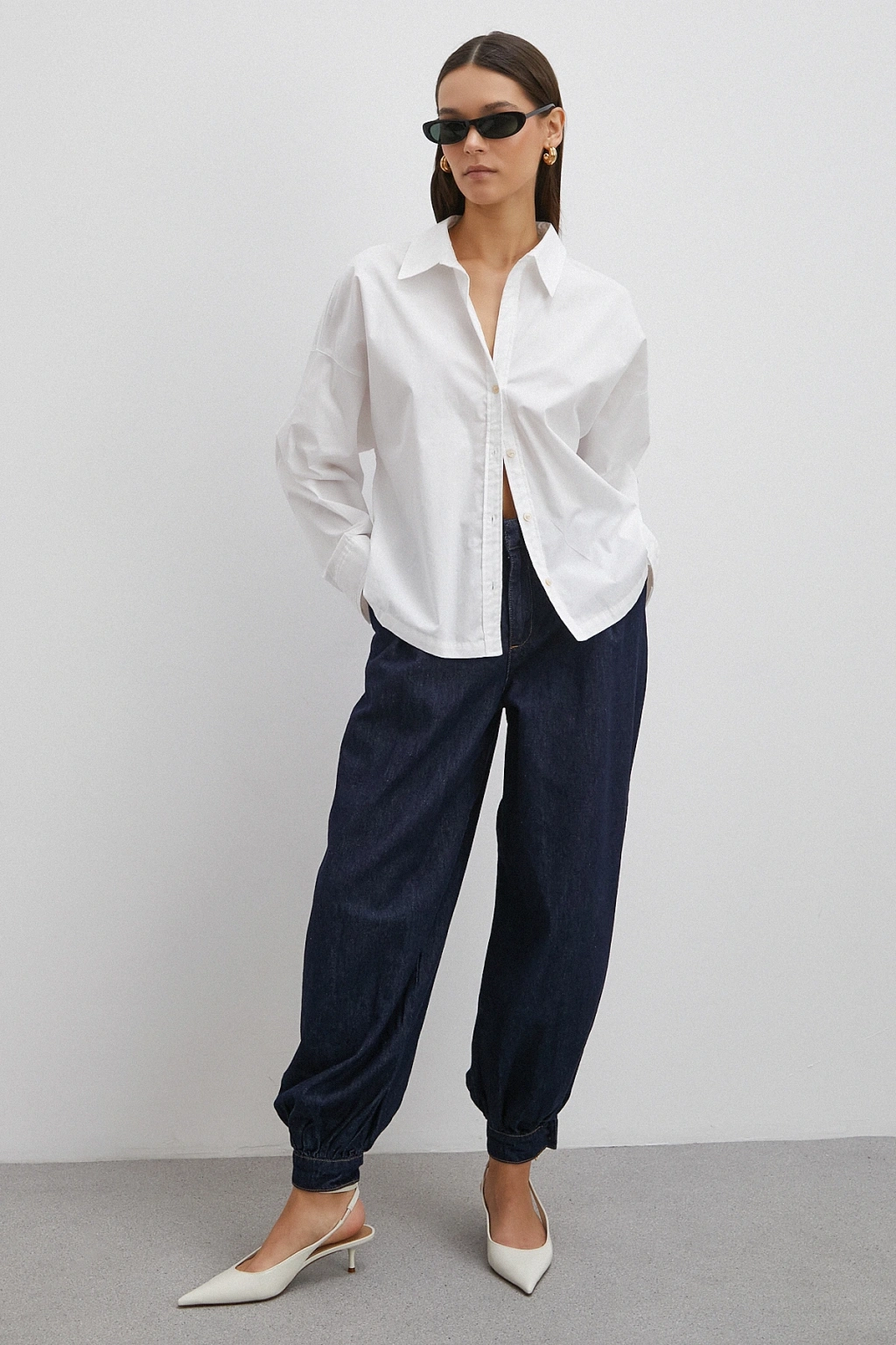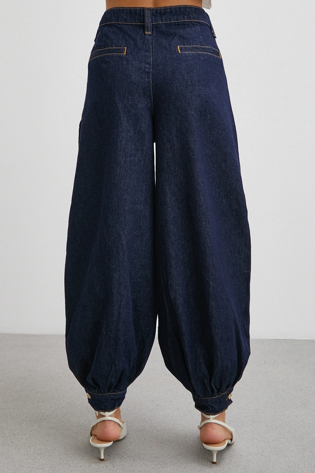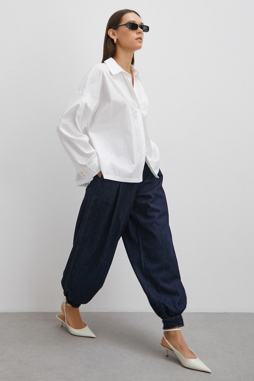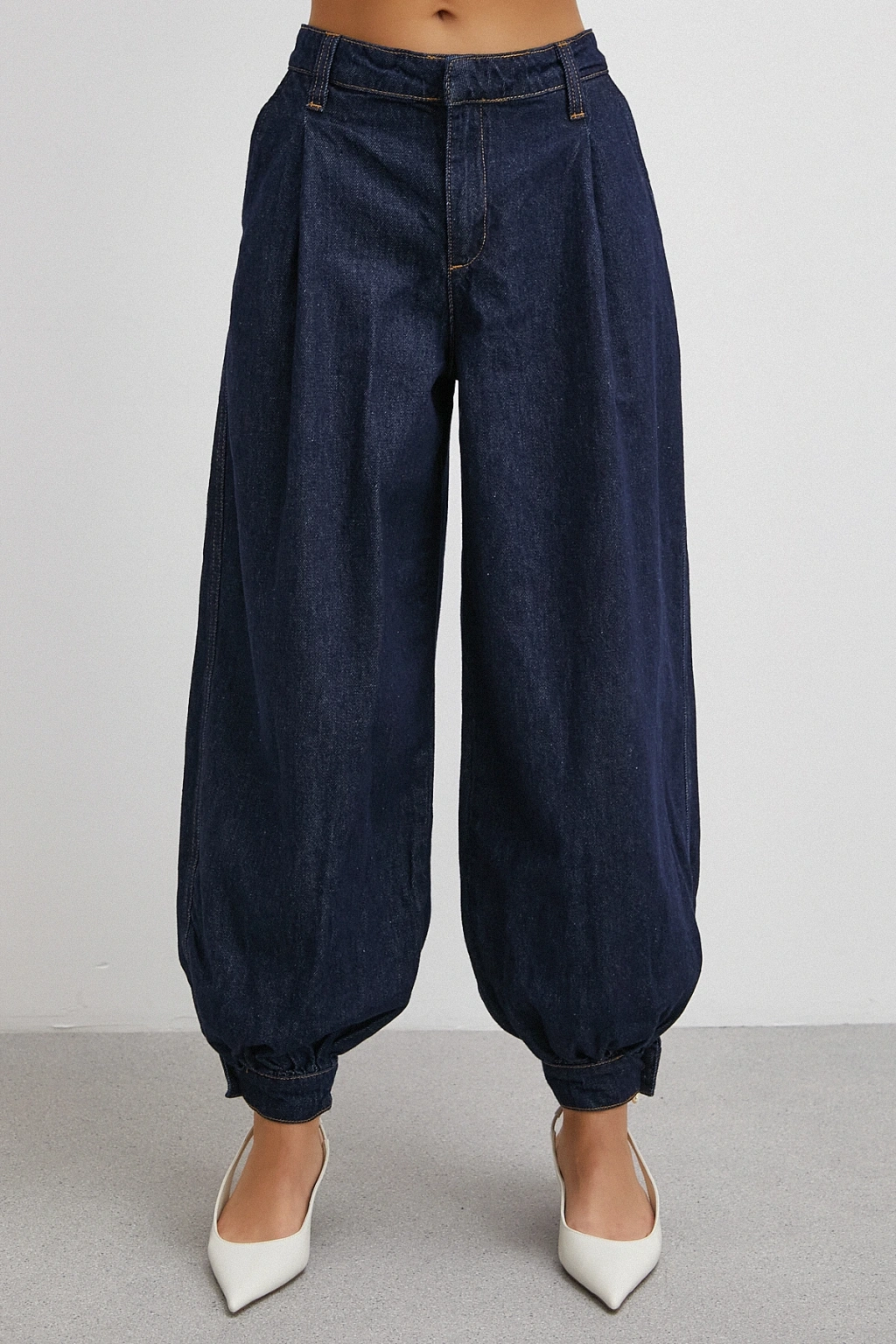 Paçası Düğmeli Yüksek Bel Mom Jean Lacivert