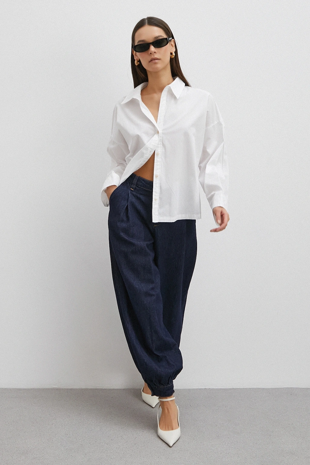 Yüksek Bel Geniş Paça Beş Cepli Jean Mavi