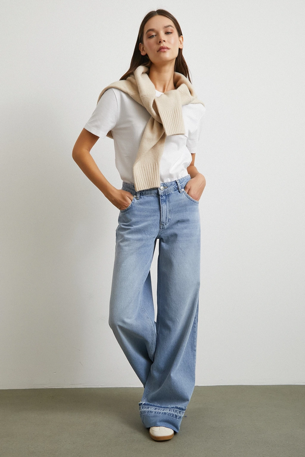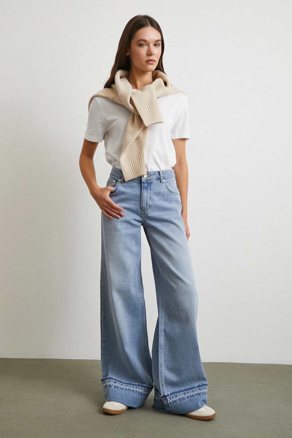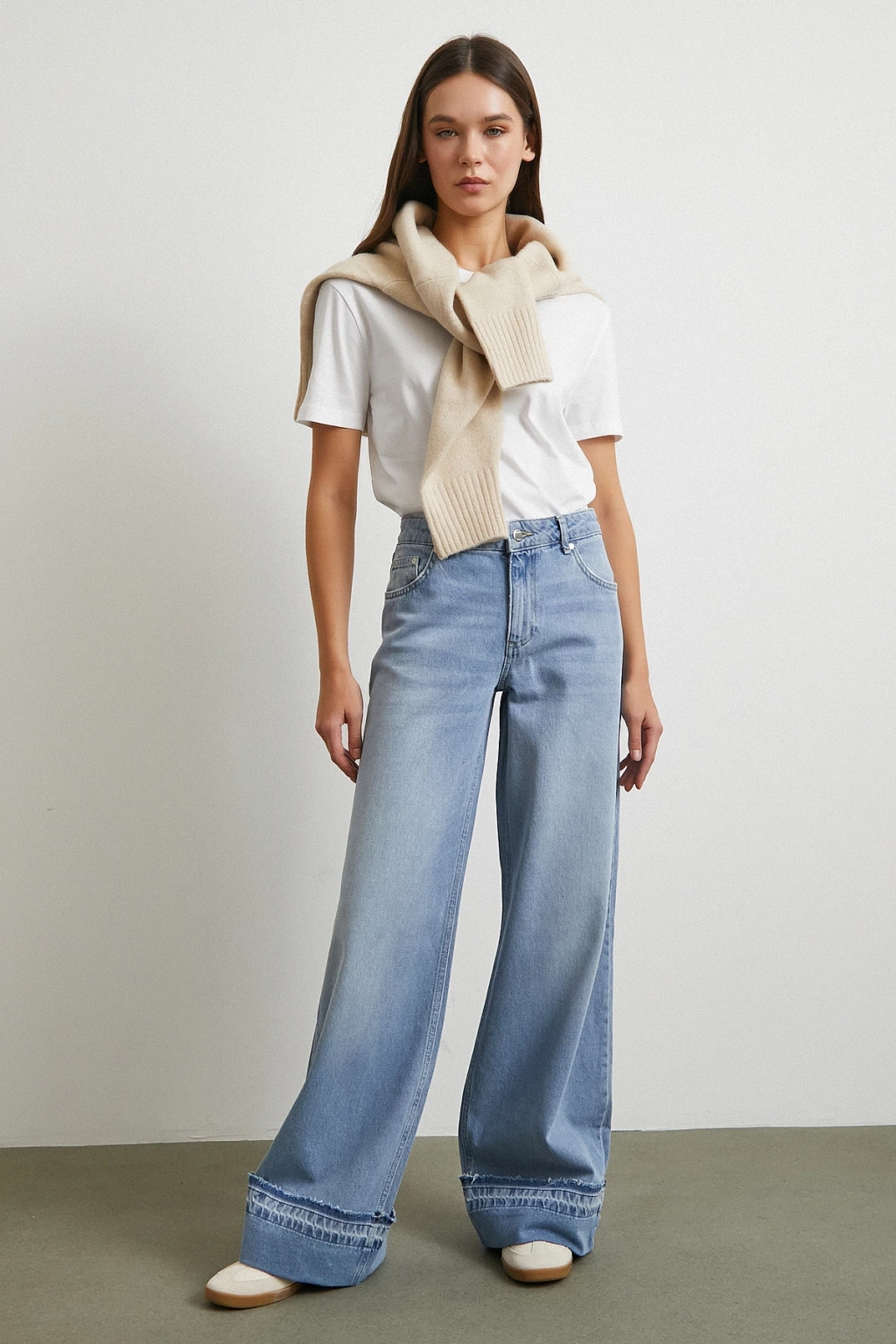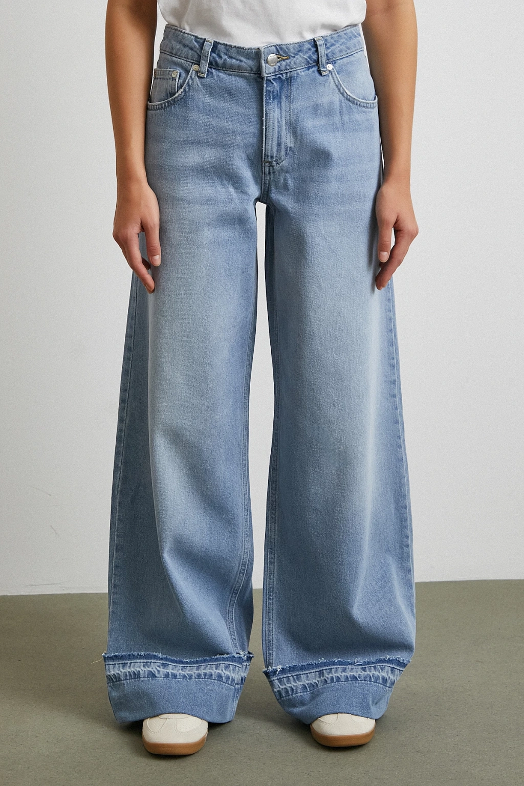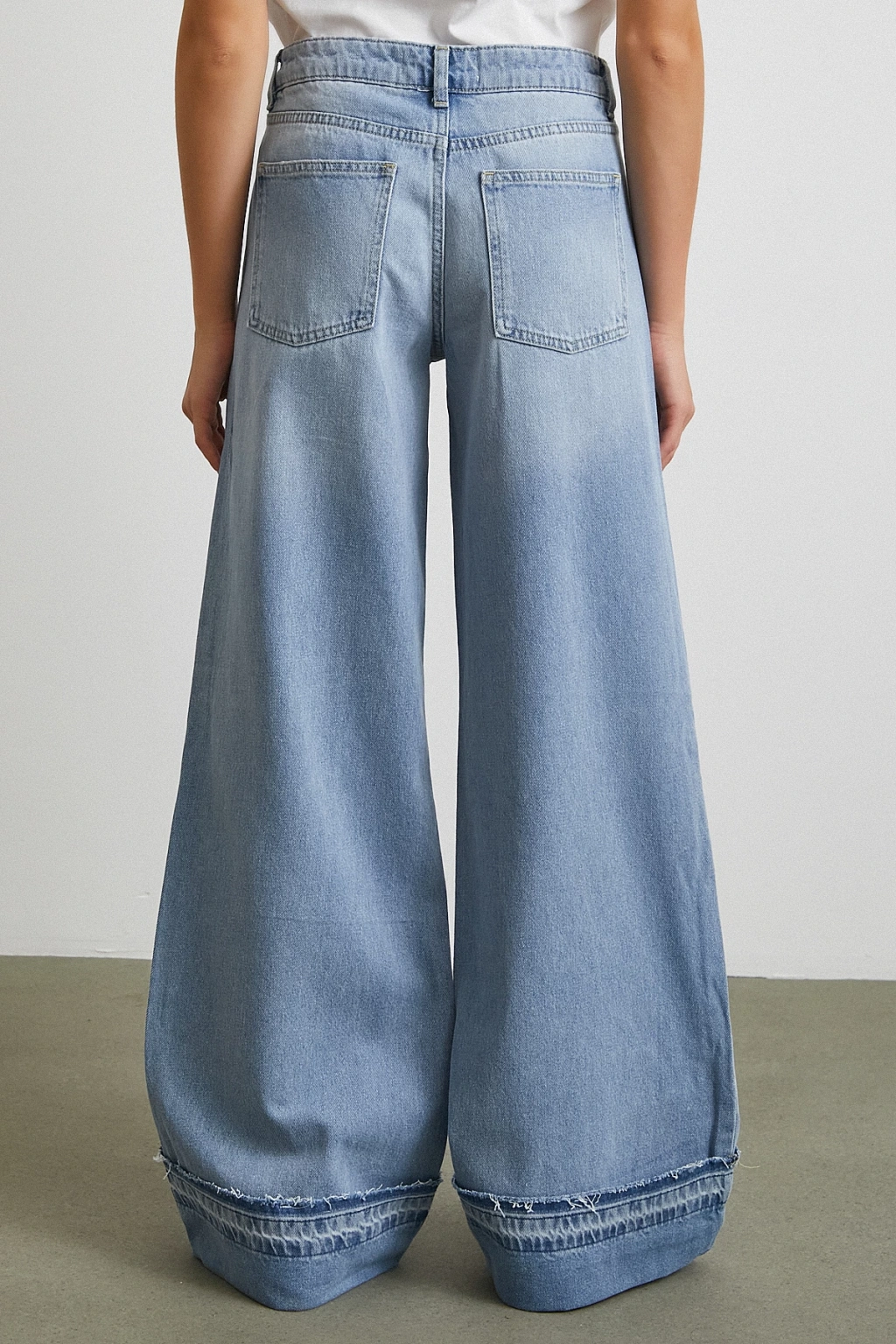 Paçası Katlamalı Geniş Paça Jean Buz Mavisi