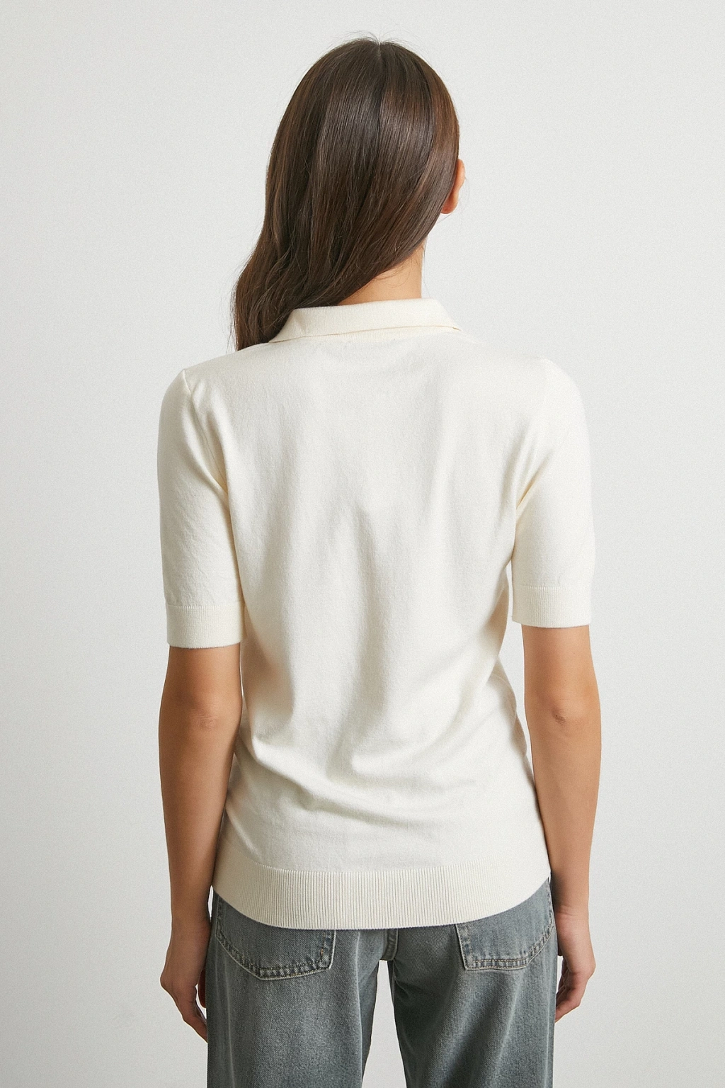 Polo Yaka Düğmeli Kısa Kol Ekru
