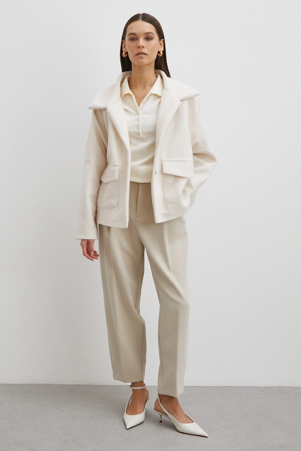 Apoletli Yünlü Körük Cepli Kaşe Mont Bej