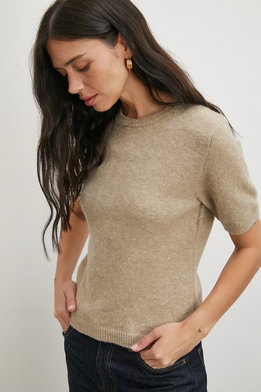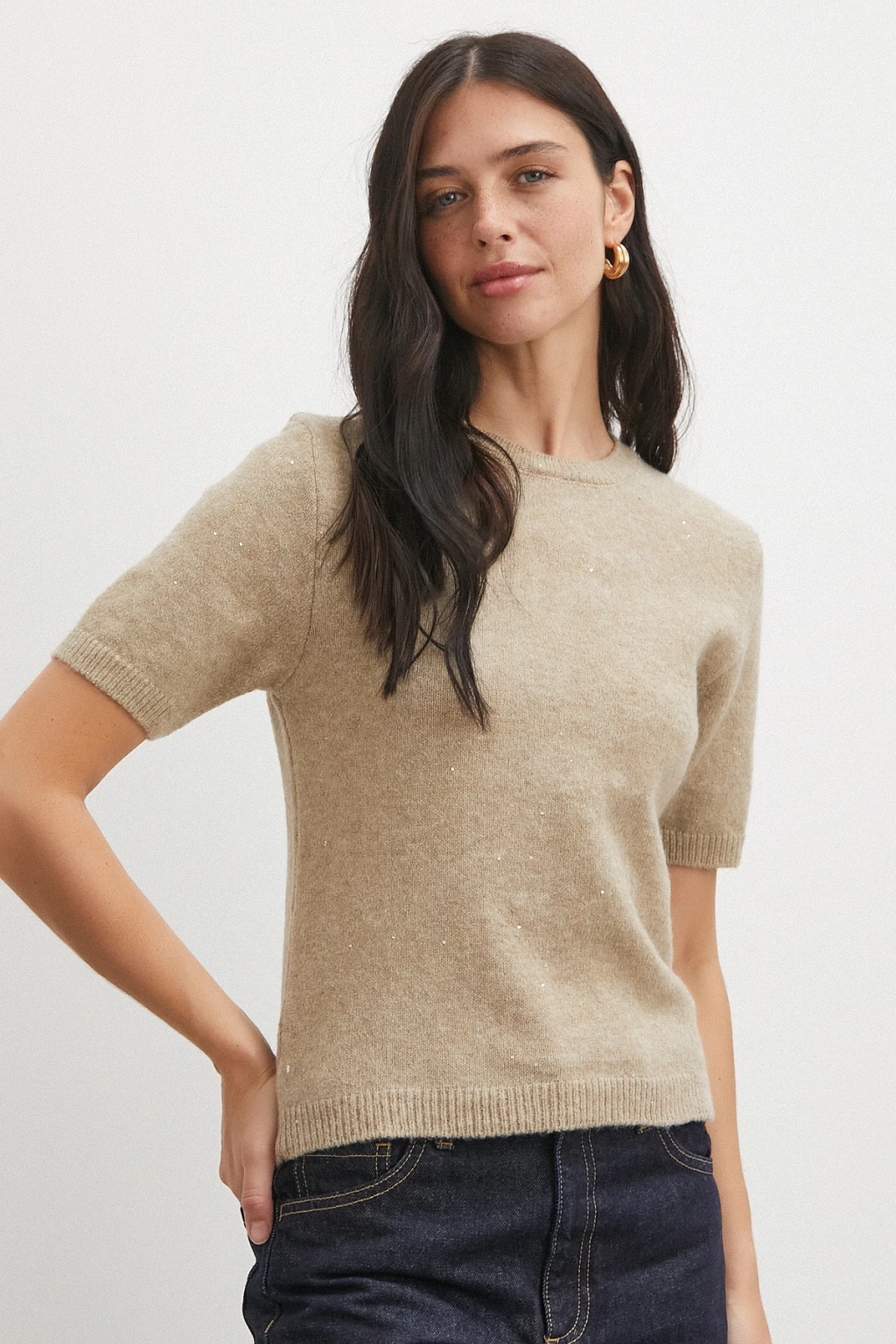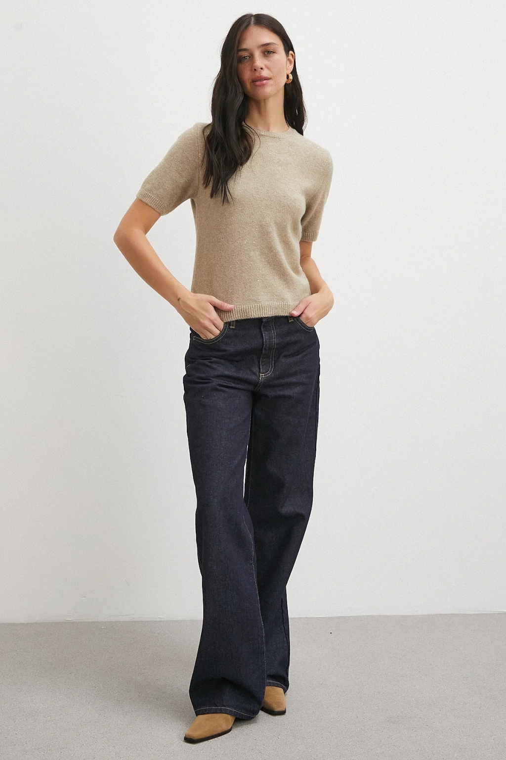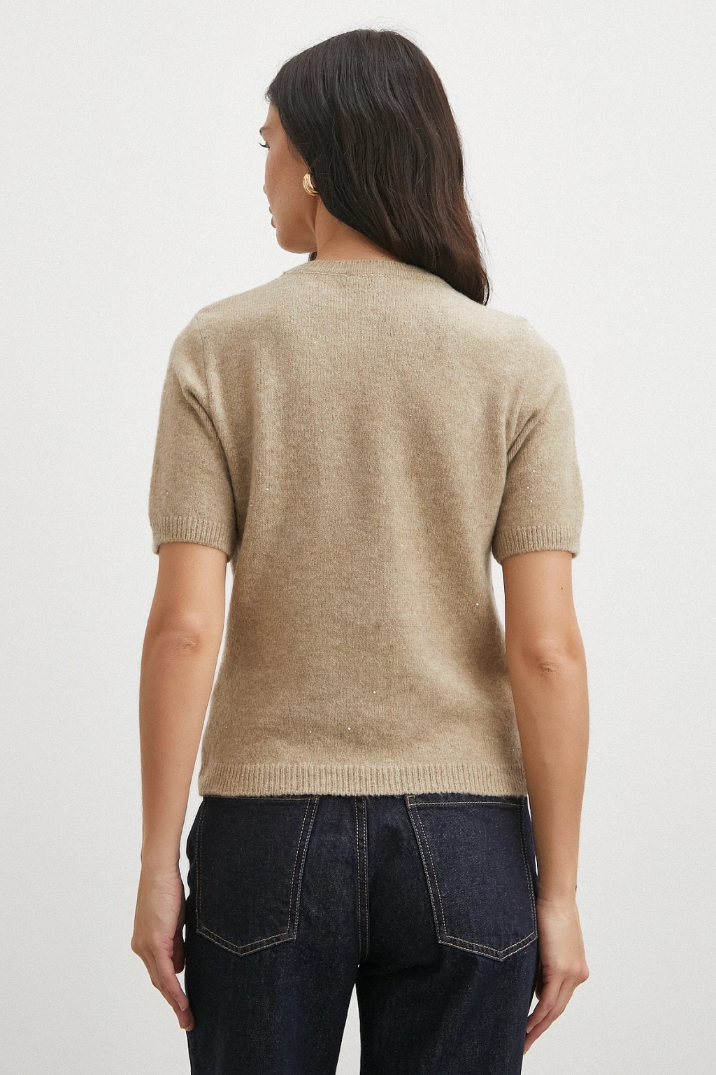 Polo Yaka Düğmeli Kısa Kol Ekru