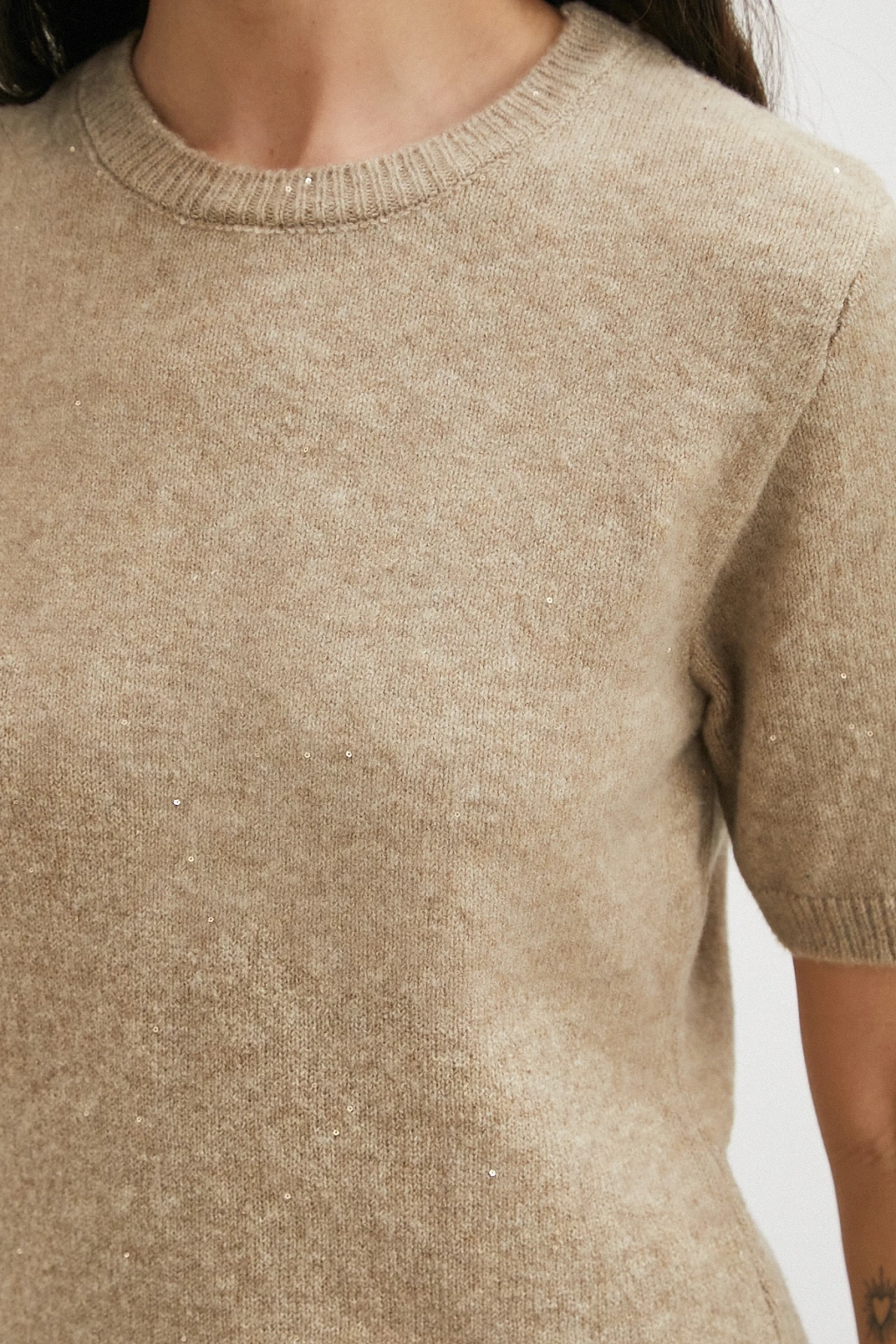 Saç Örgülü Yarım Fermuarlı Kazak Ekru