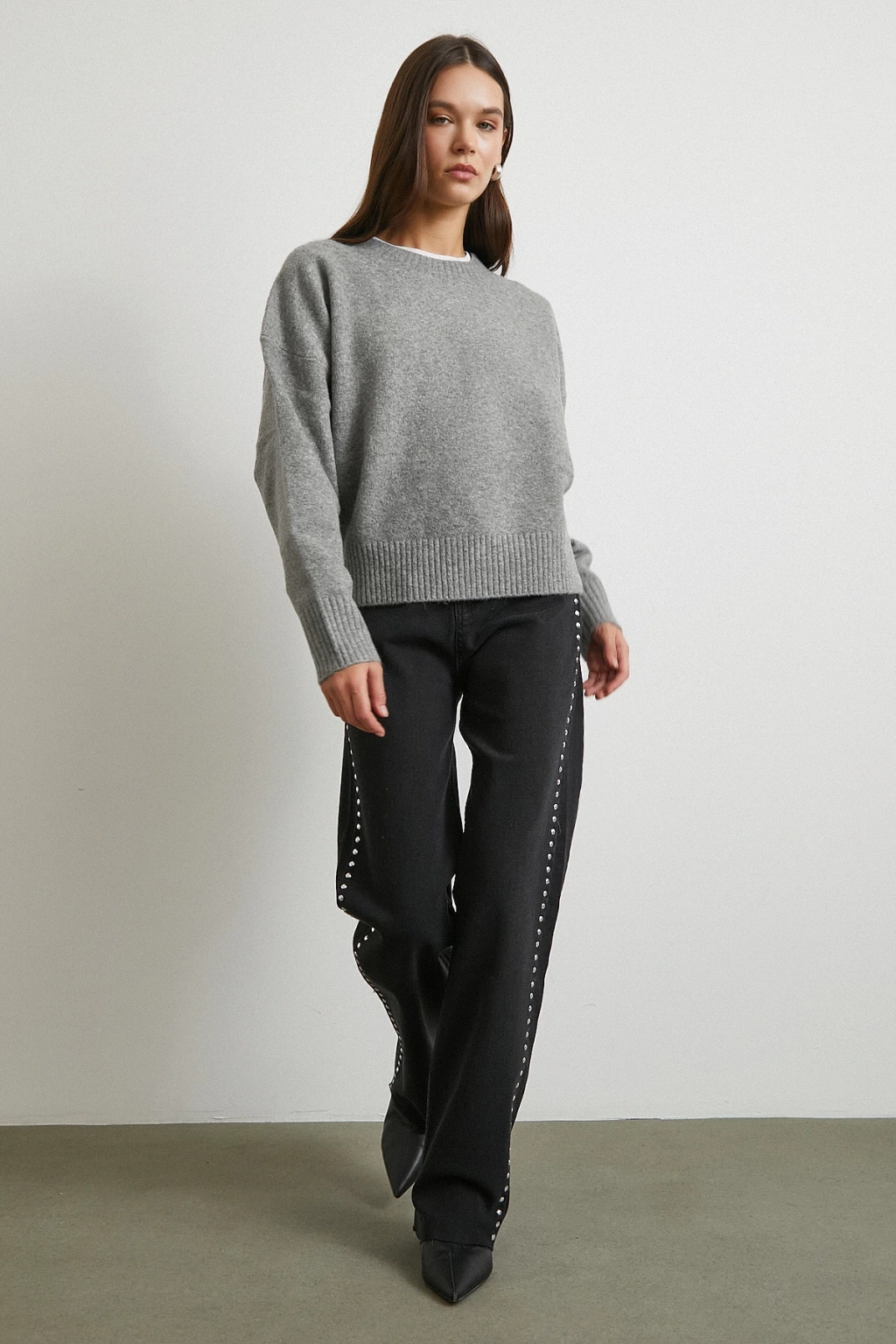 Çapraz Fermuarlı Kesik Paça Düğmeli Jean Füme