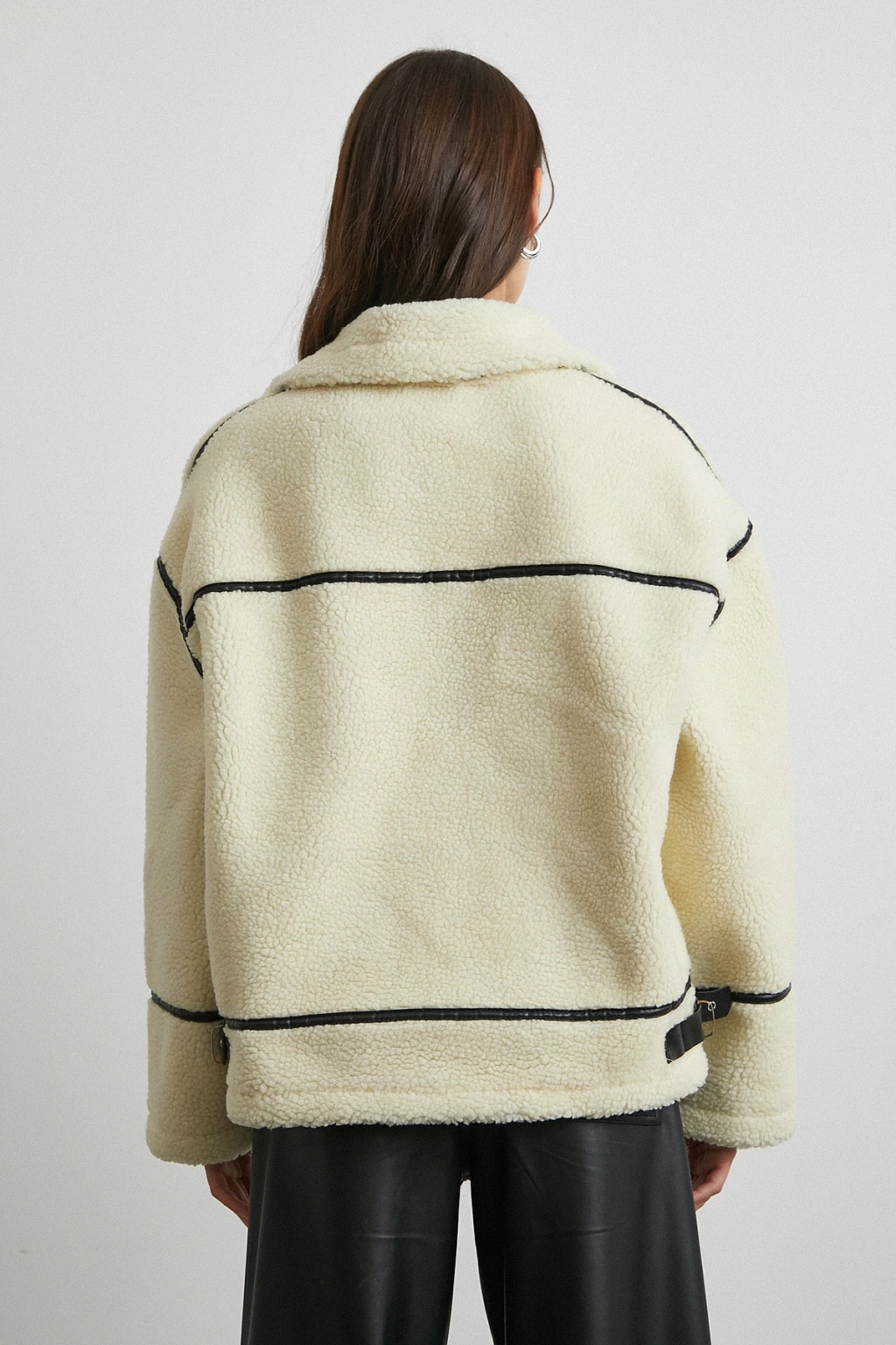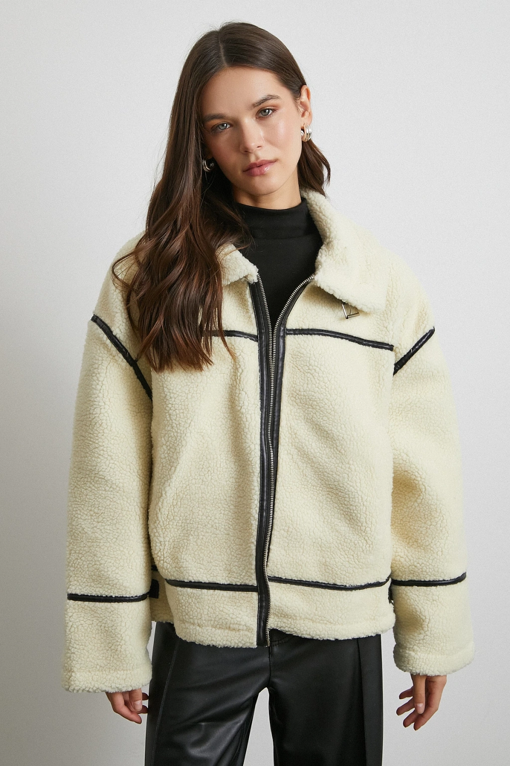 Polo Yaka Cepli Gold Düğmeli Ceket Krem