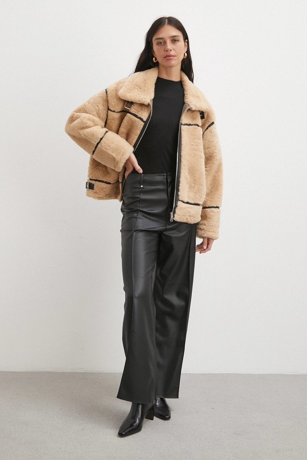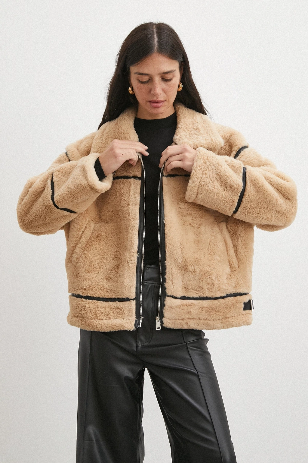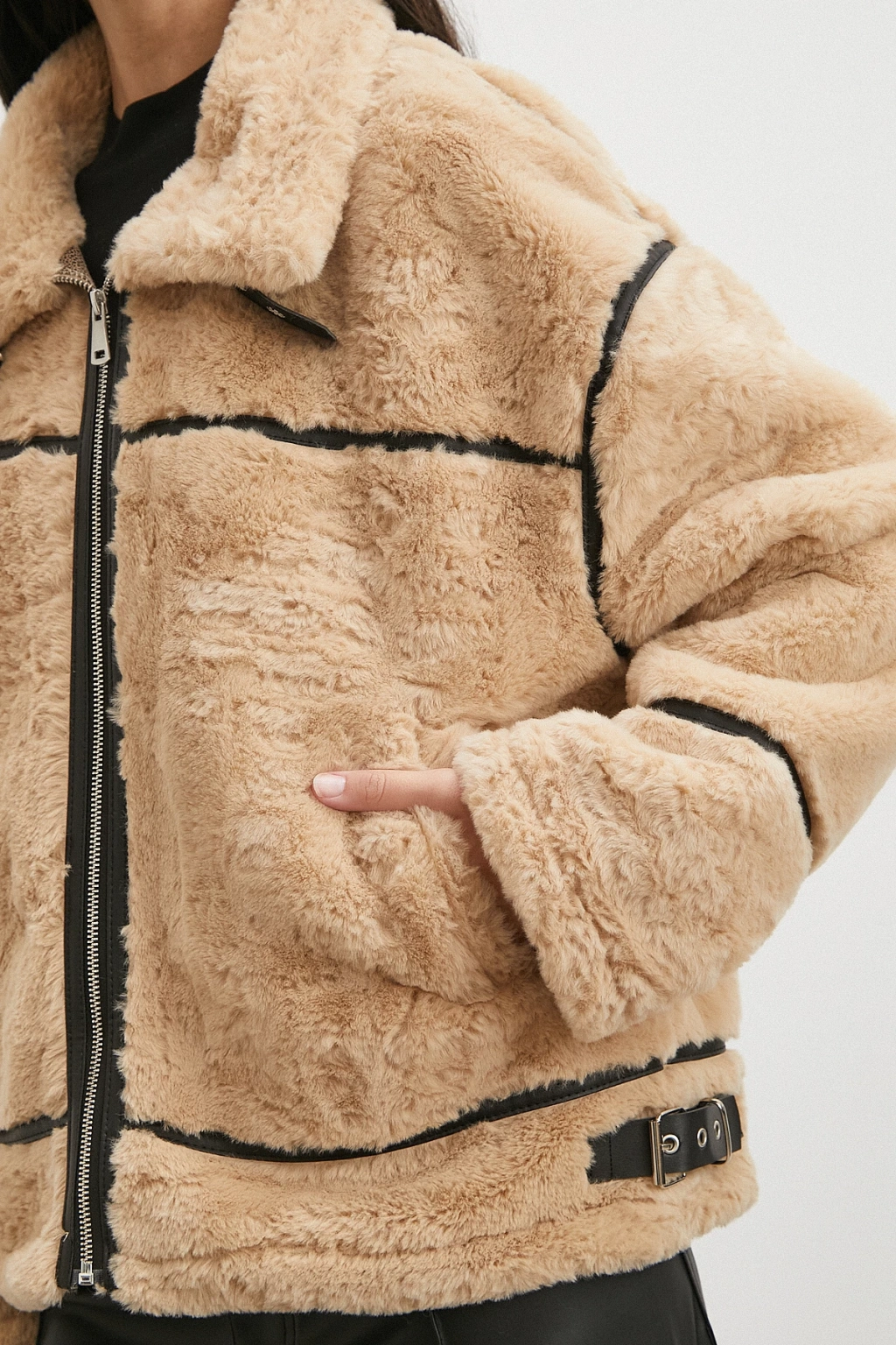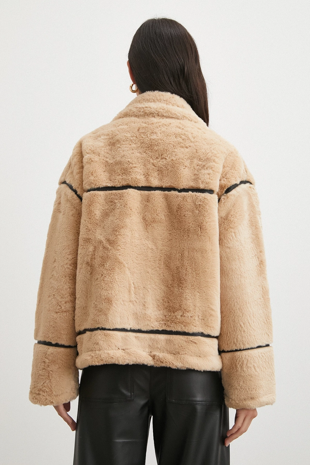 Ters Detay Peluş Lamine Mont Bej