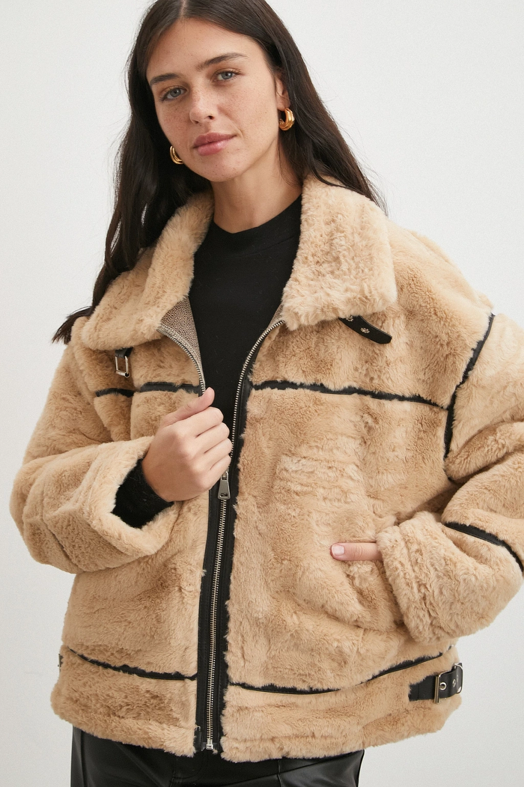 Yaka Detaylı Peluş Mont Siyah