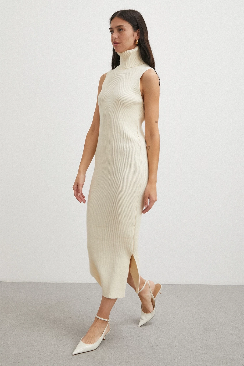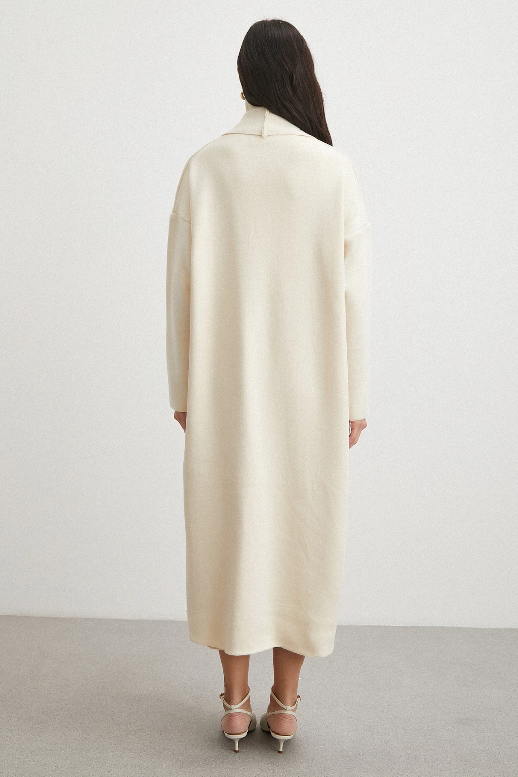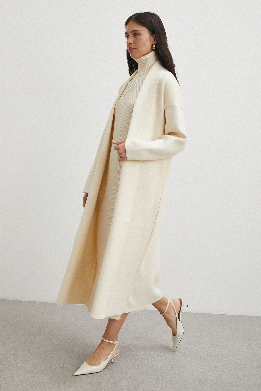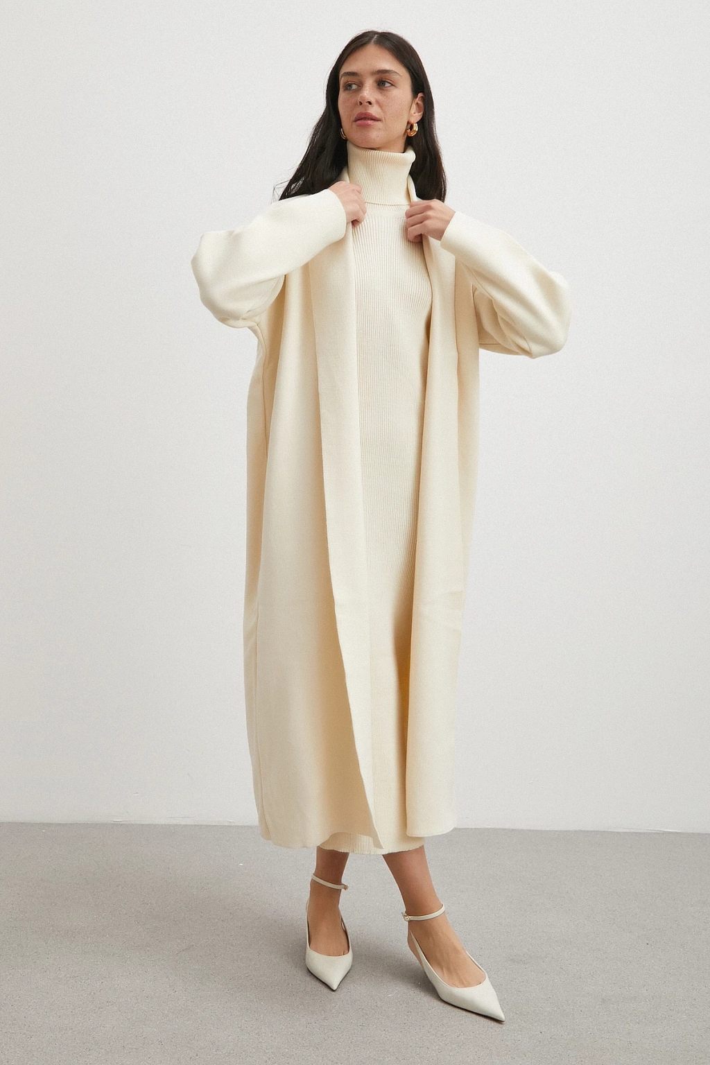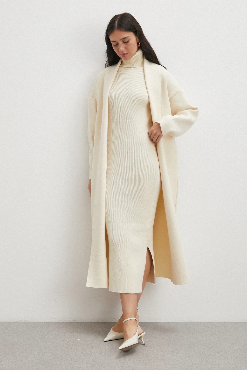Uzun Elbiseli Hırka Triko Takım Ekru