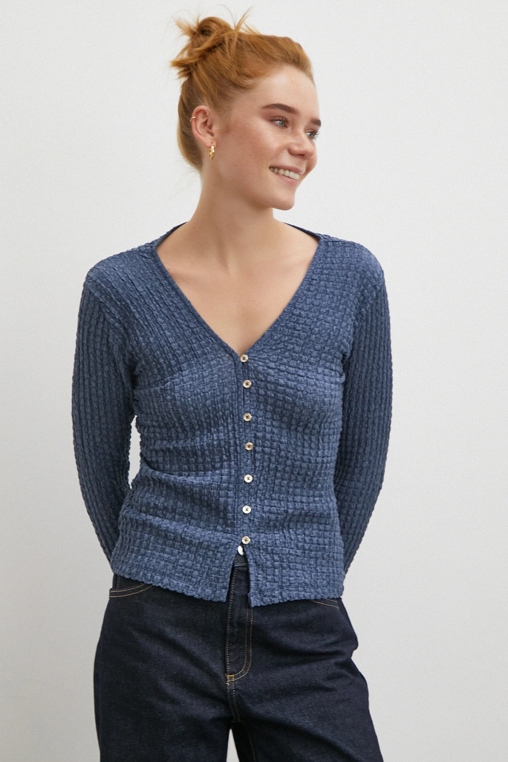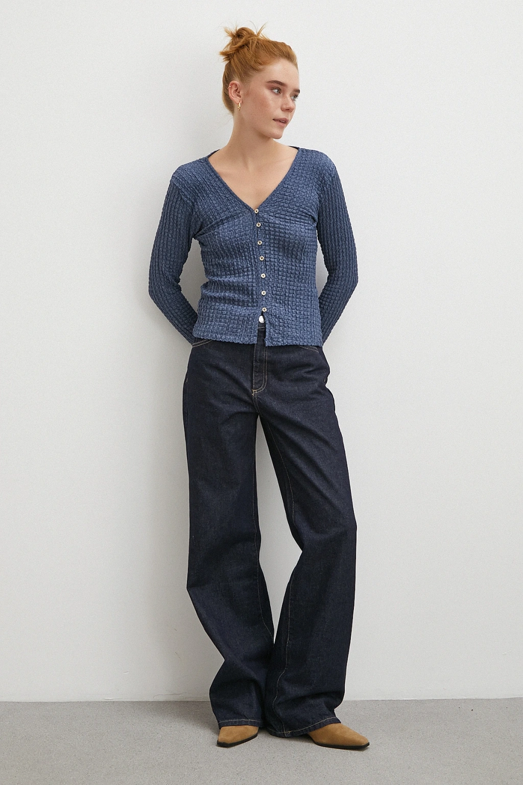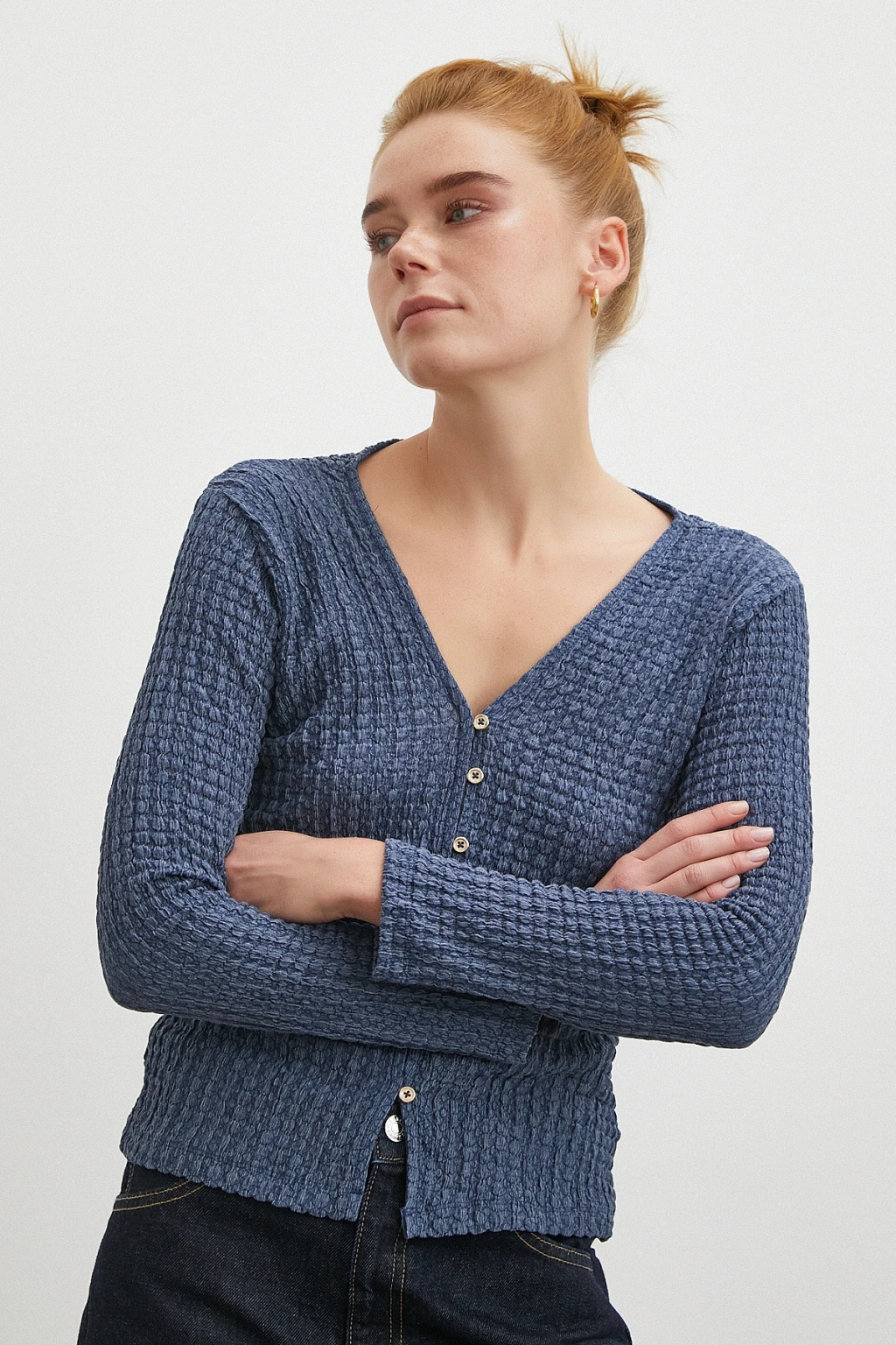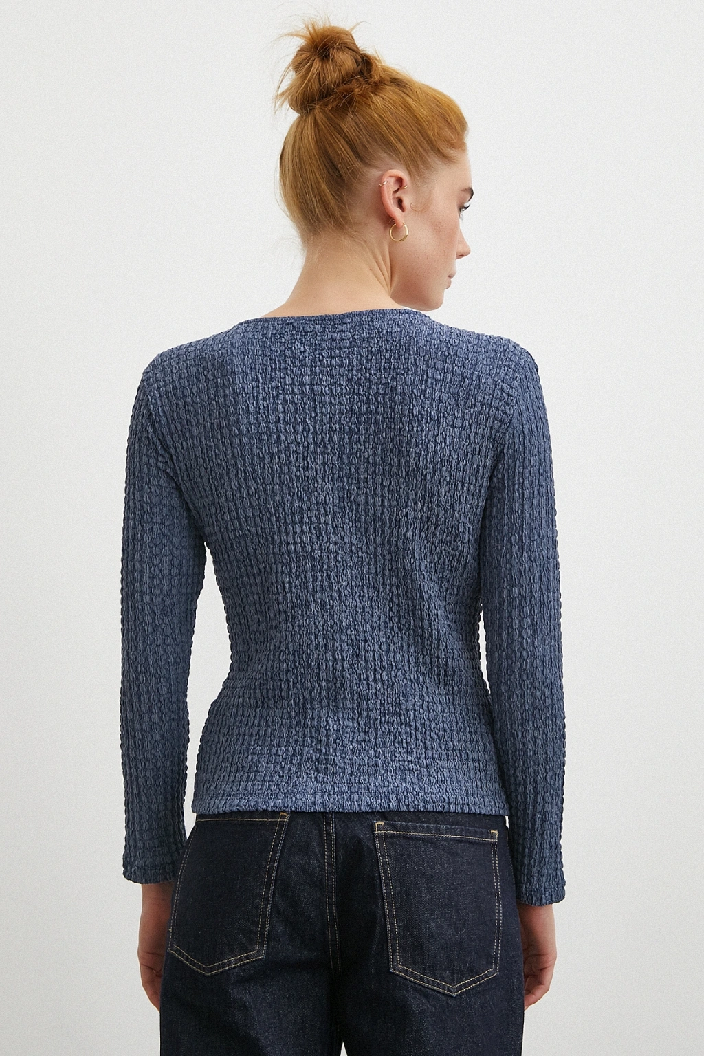 Bisiklet Yaka Fitilli Triko Kazak Lacivert