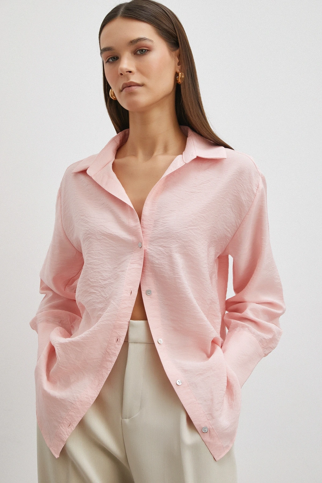 Düğme Detaylı Pamuklu Gömlek Beyaz