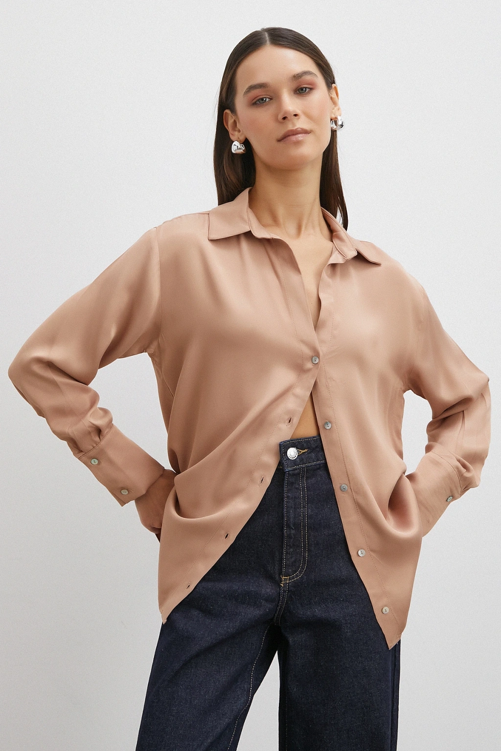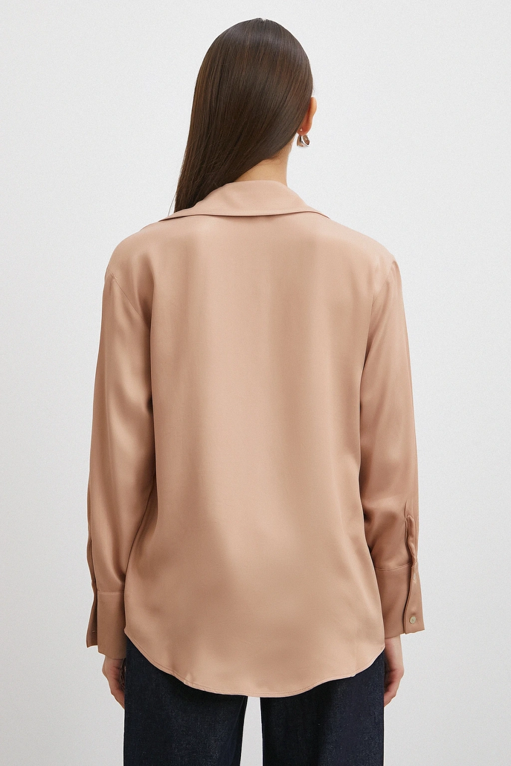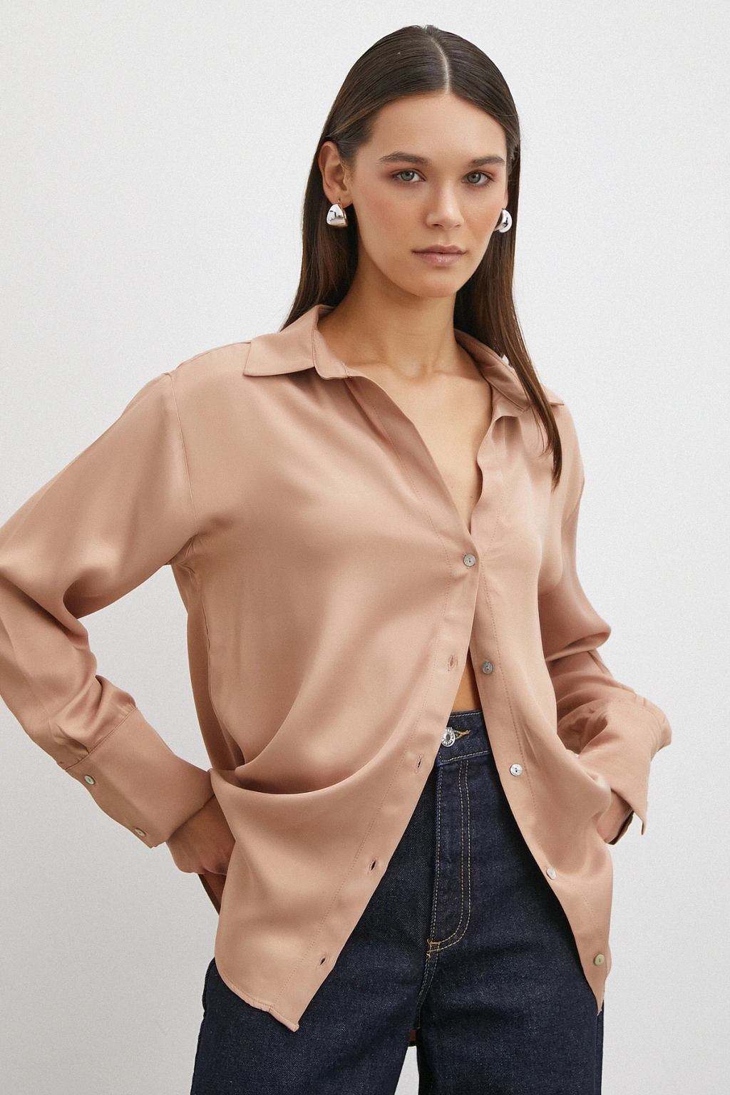 Düğme Detaylı Pamuklu Gömlek Kahve