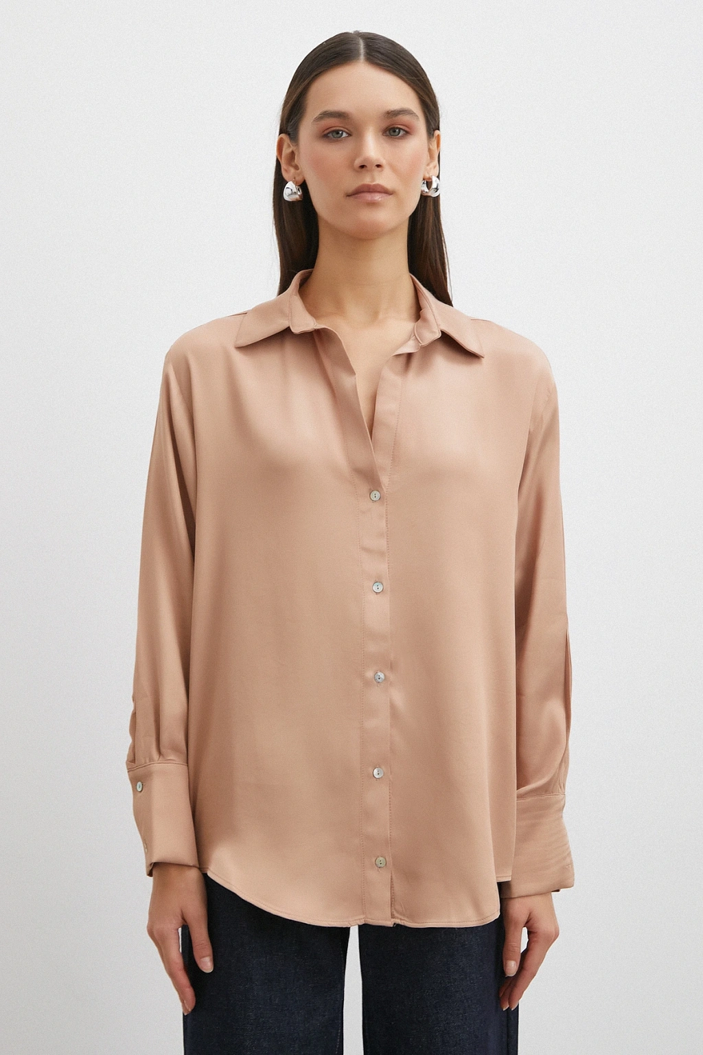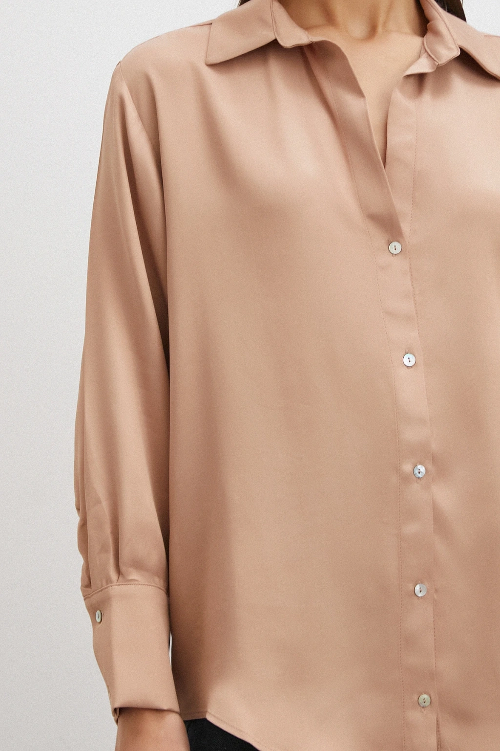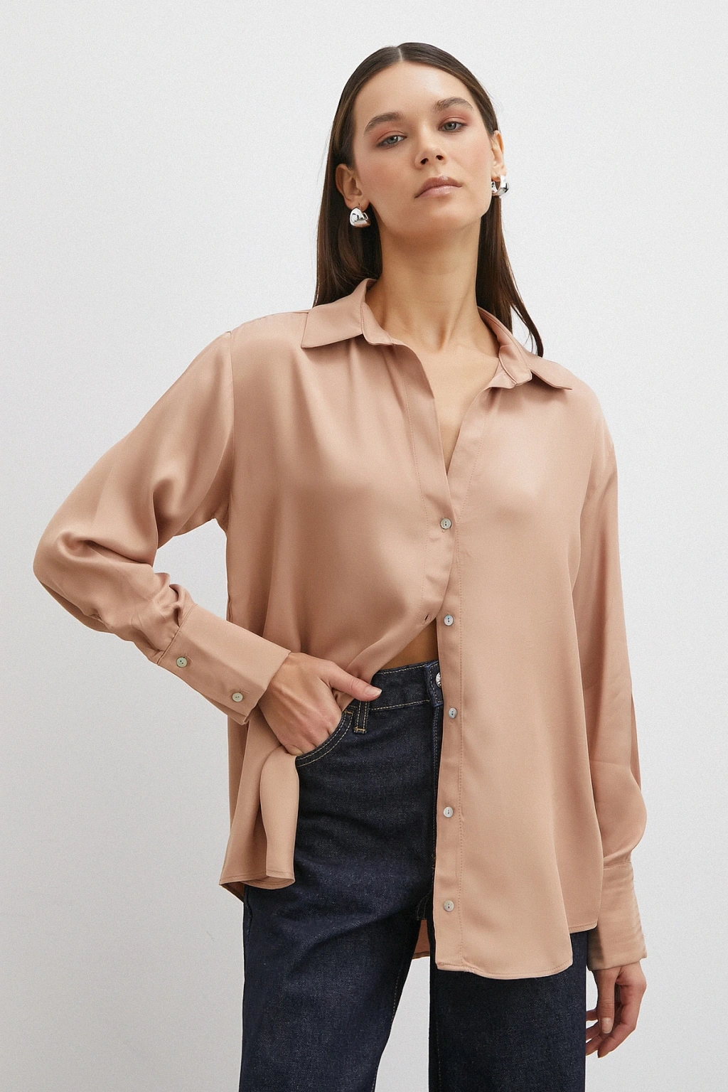 Düğme Detaylı Pamuklu Gömlek Kahve