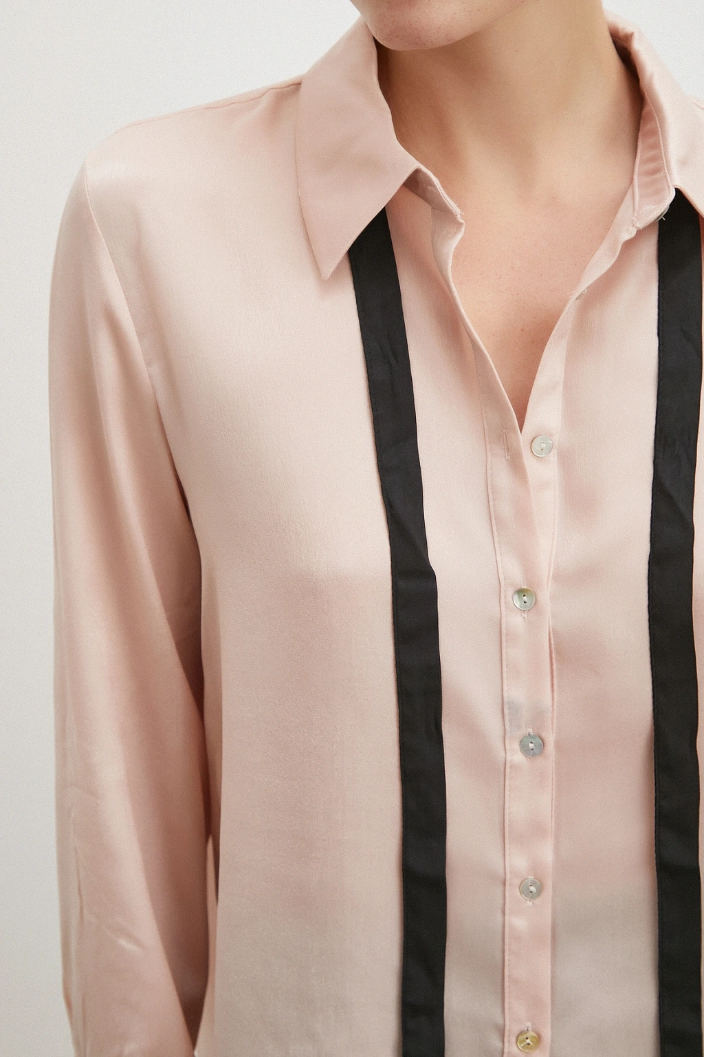 Yaka Bağlamalı Saten Gömlek Ekru