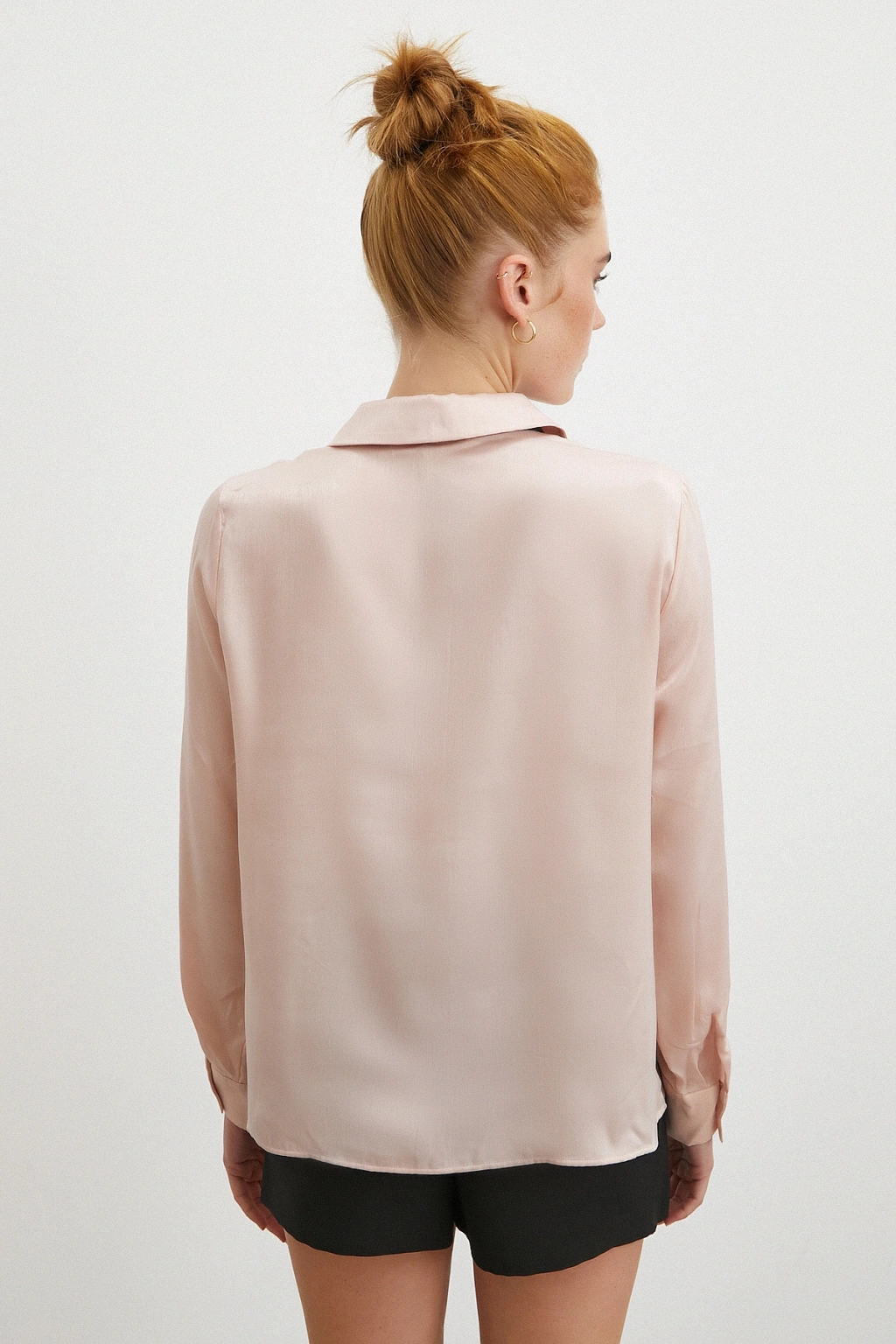 Yaka Bağlamalı Saten Gömlek Pembe