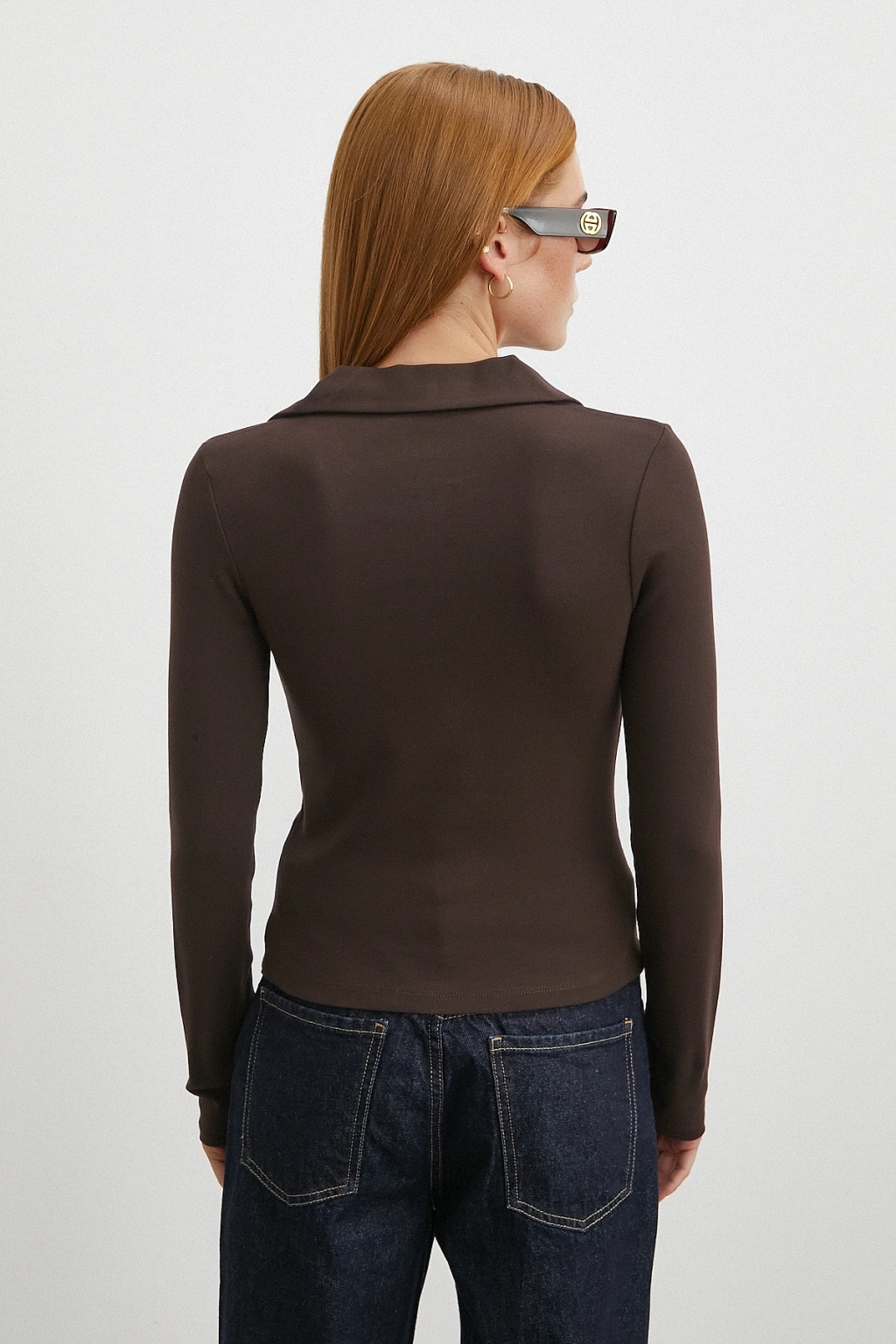Bisiklet Yaka Kol Bluz Kahve