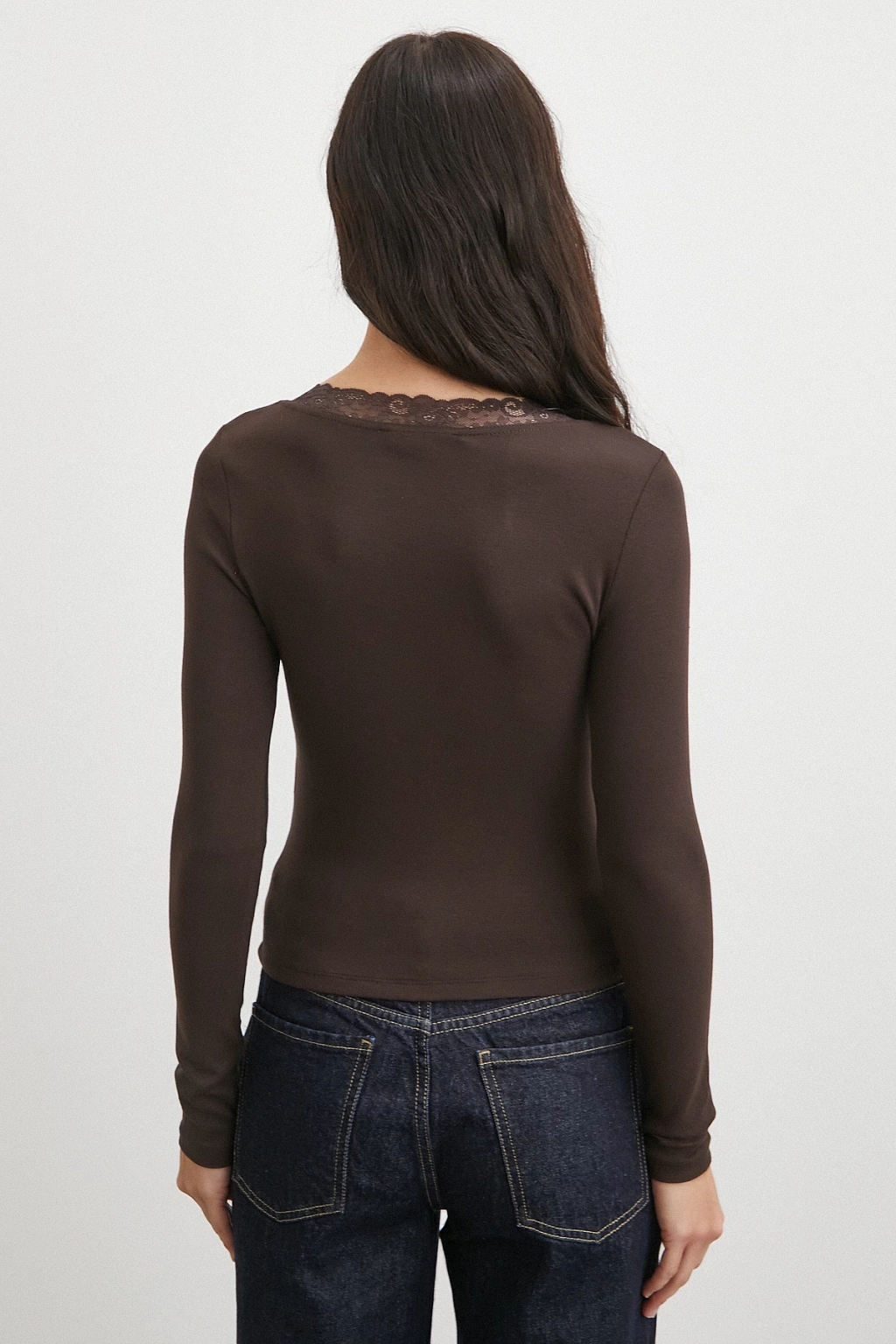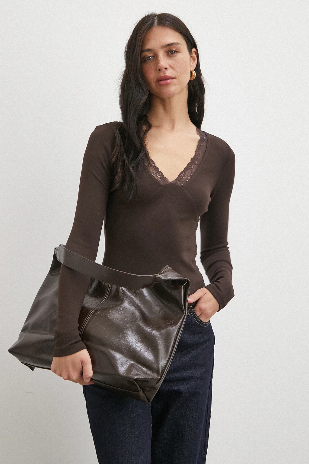 U Yaka Uzun Kollu Çıtçıtlı Bodysuit Siyah