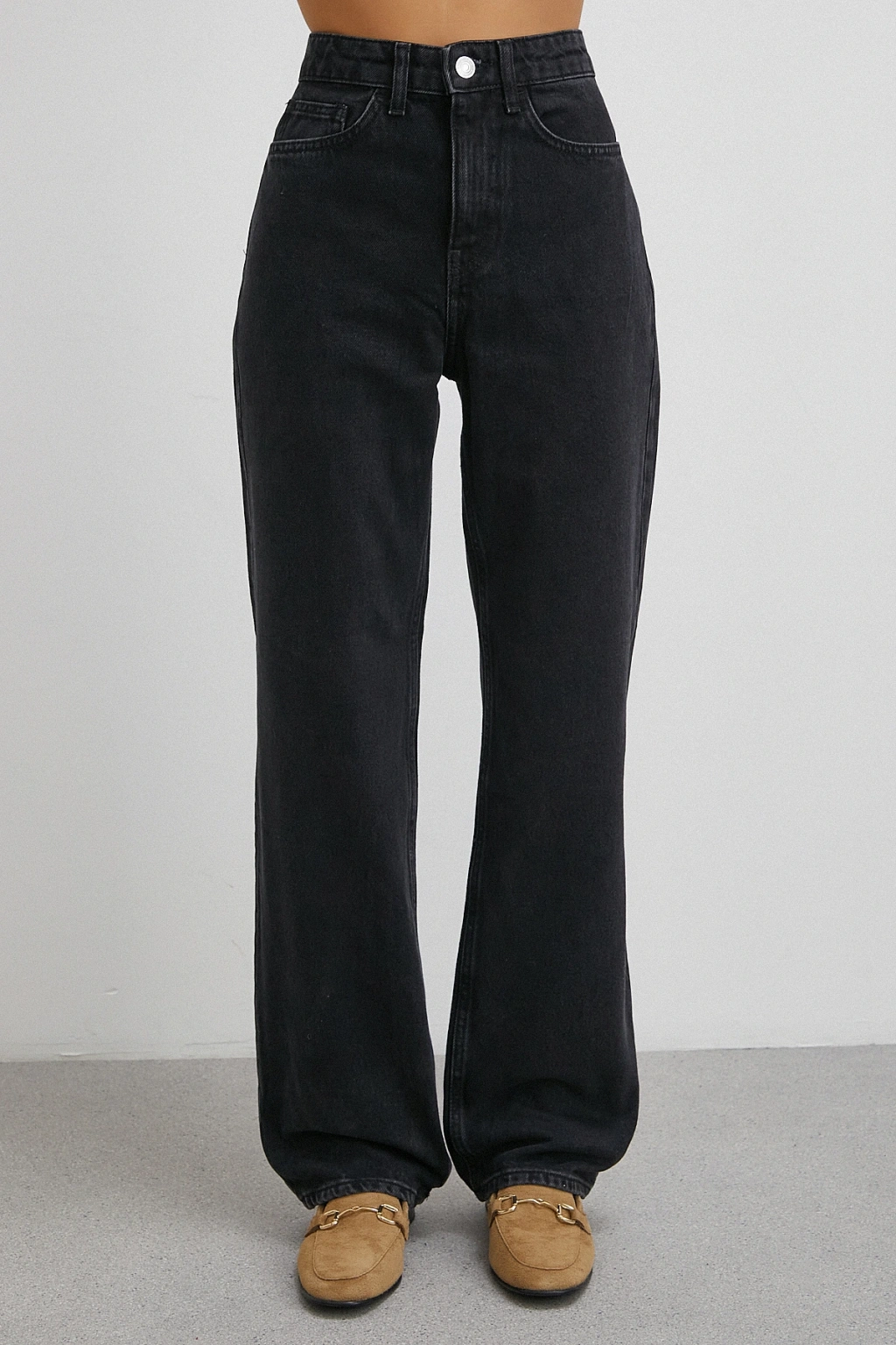 Yüksek Bel Boru Paça Jean Siyah