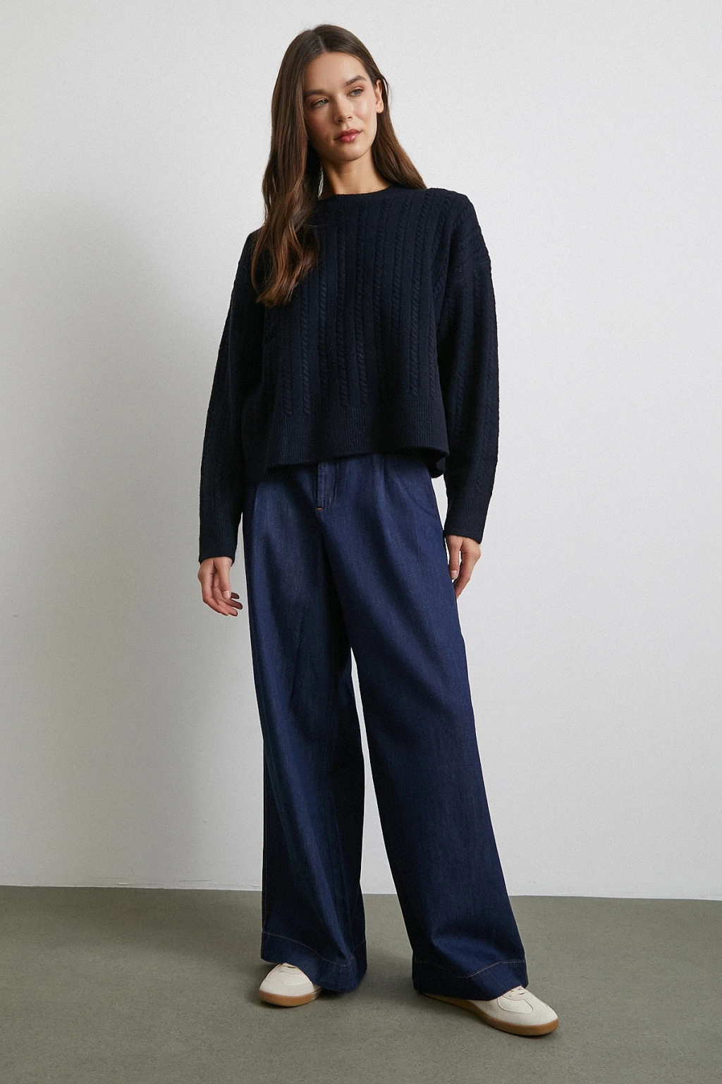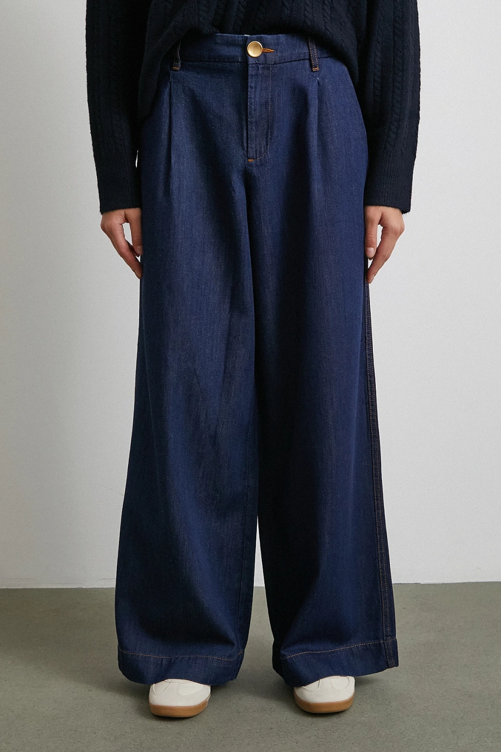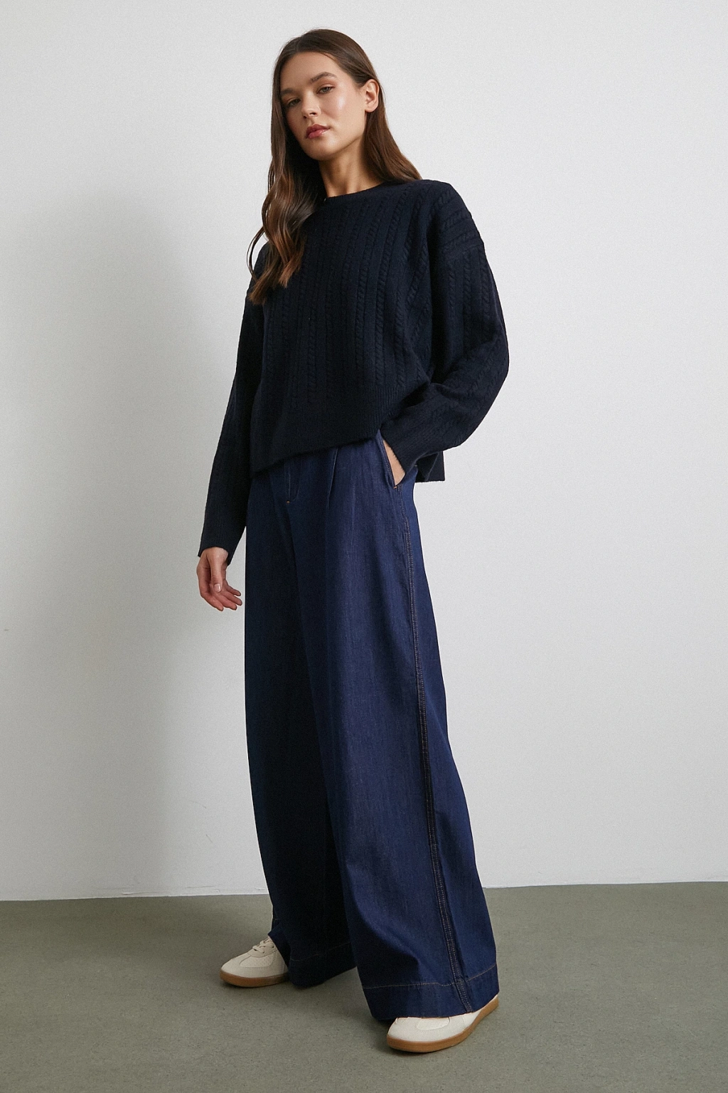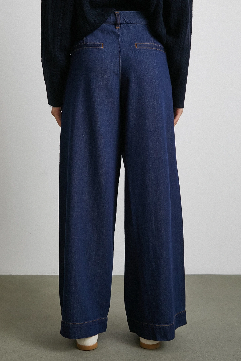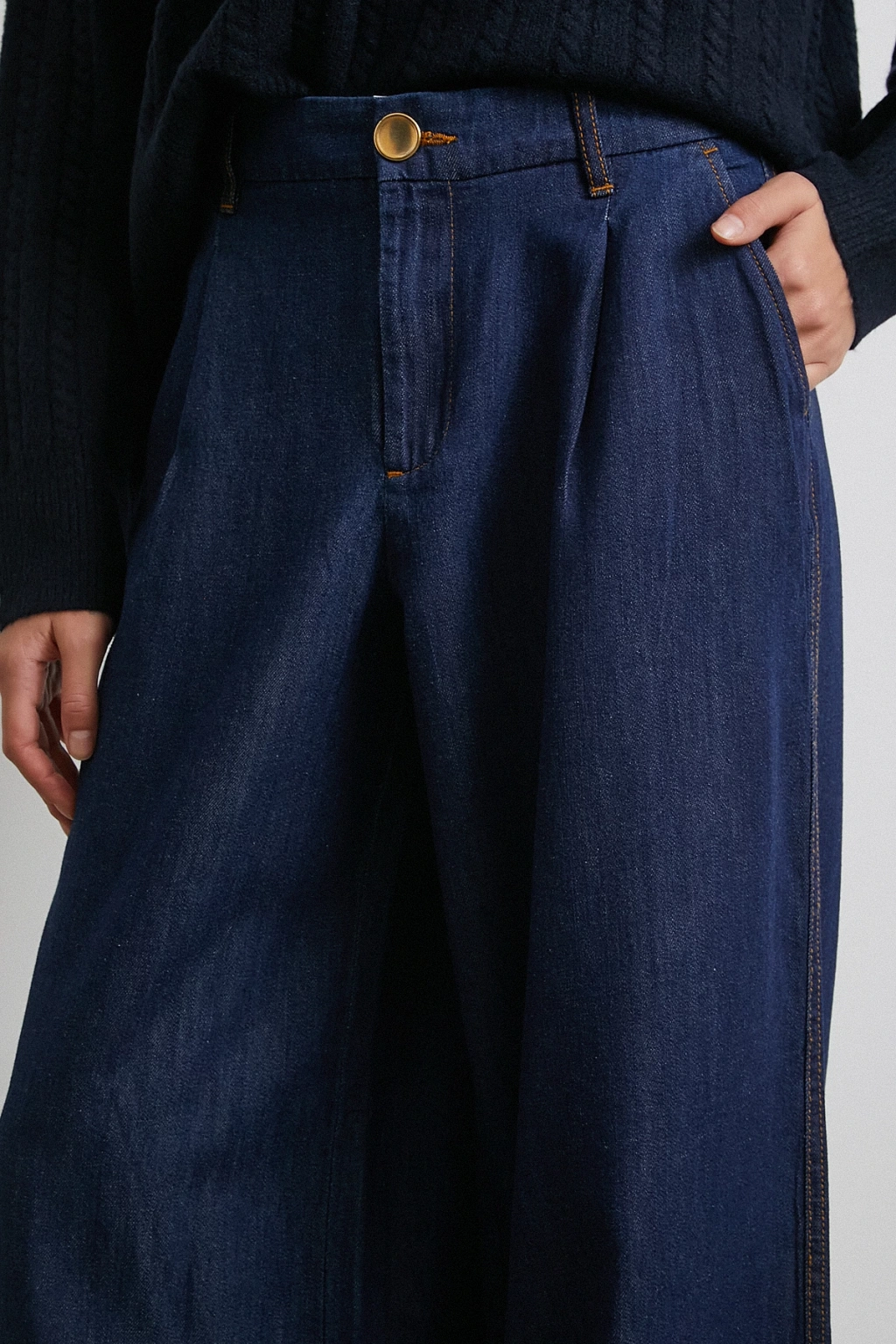 Yüksek Bel Geniş Paça Beş Cepli Jean Mavi