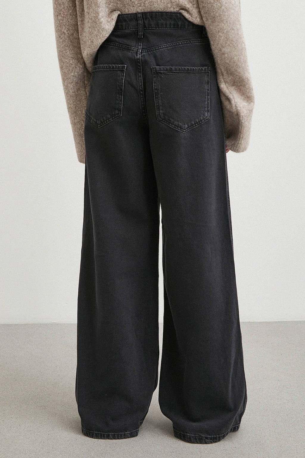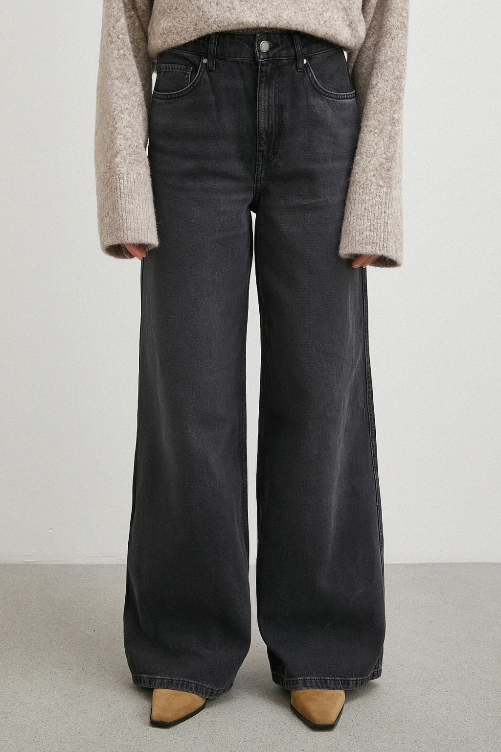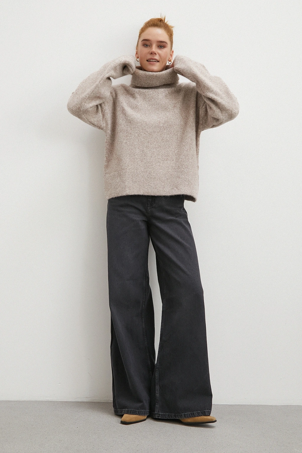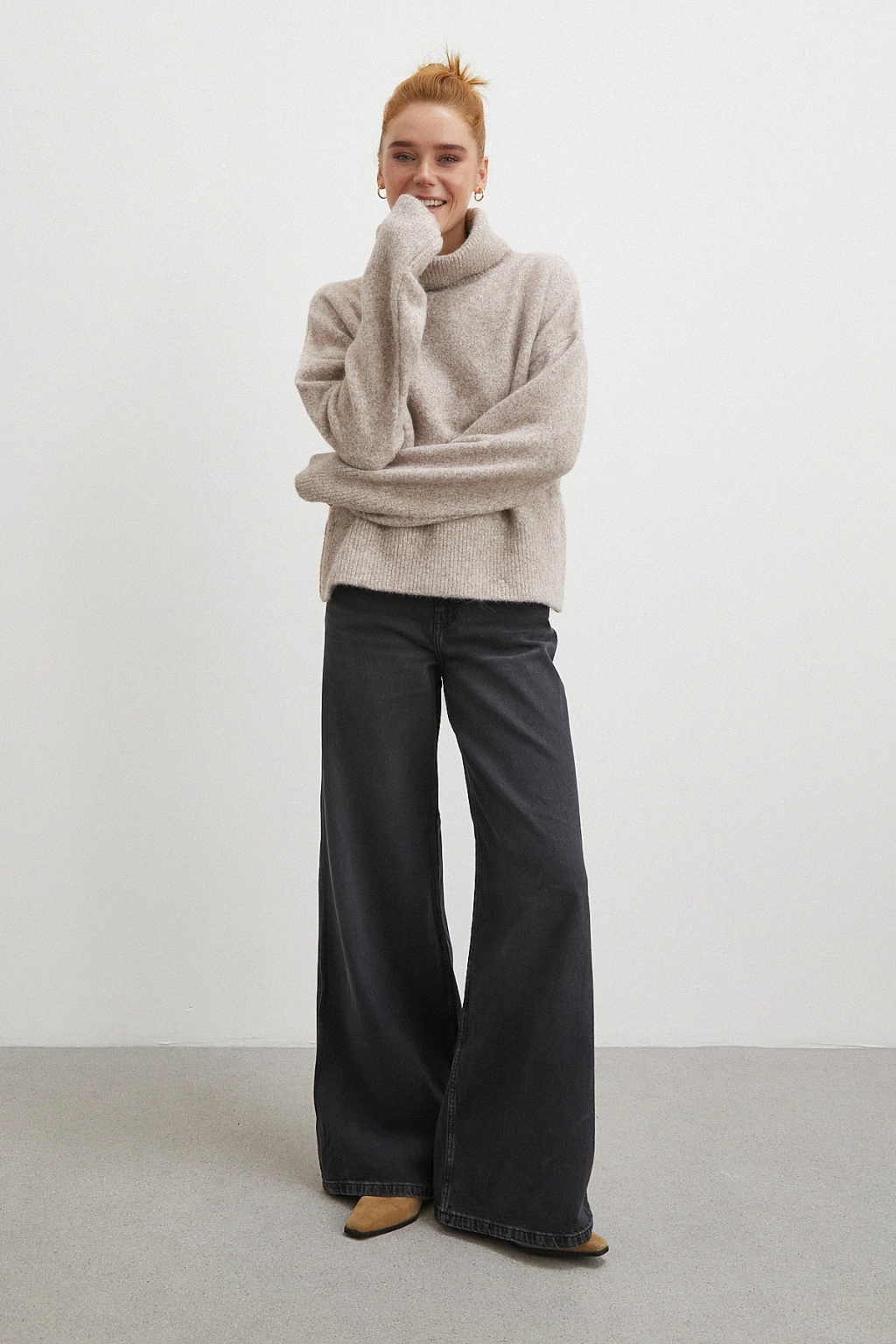 Yüksek Bel Pileli Geniş Paça Jean Füme