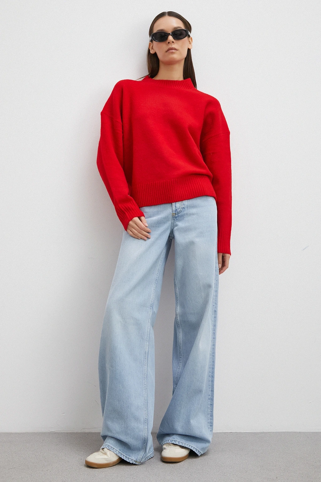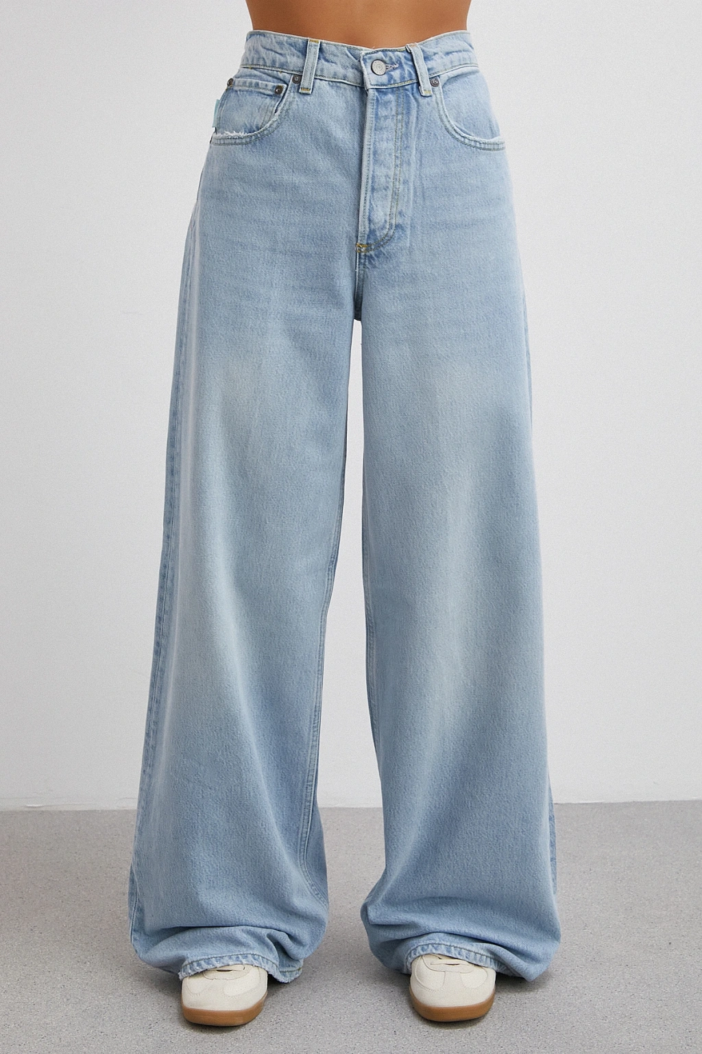 Düşük Bel Wide Leg Jean Mavi