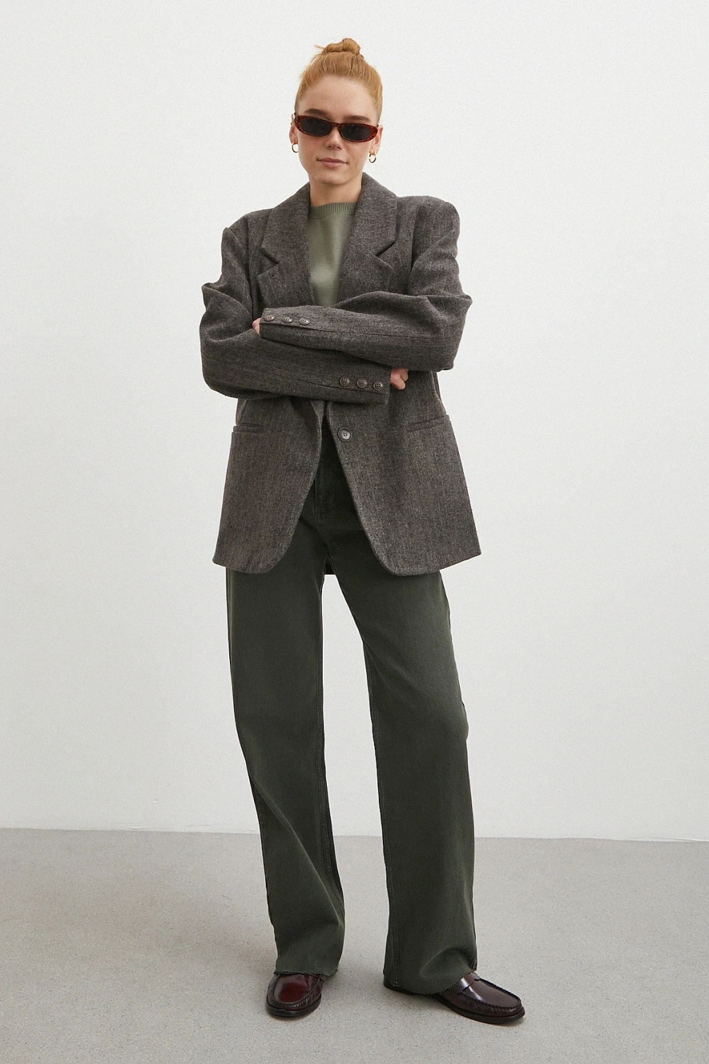 Yüksek Bel Pileli Geniş Paça Jean Füme