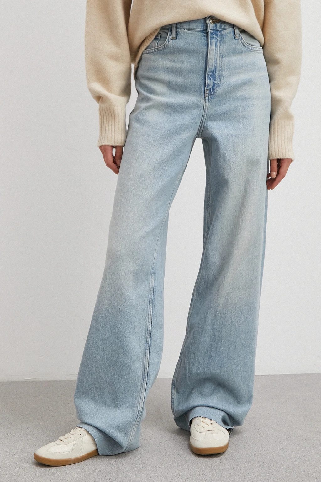 Paçası Katlamalı Geniş Paça Jean Buz Mavisi