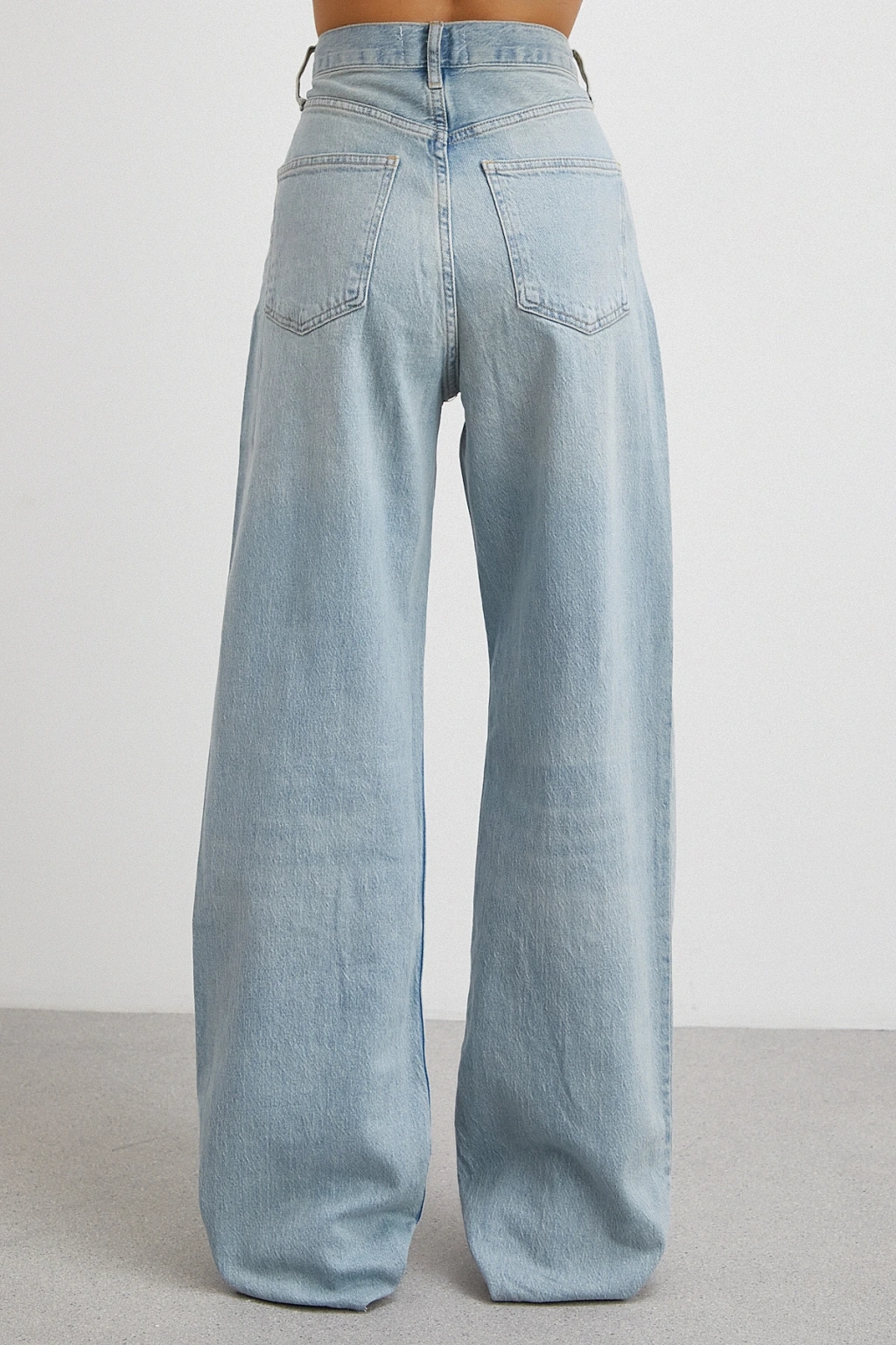 Yüksek Bel Geniş Paça Beş Cepli Jean Mavi
