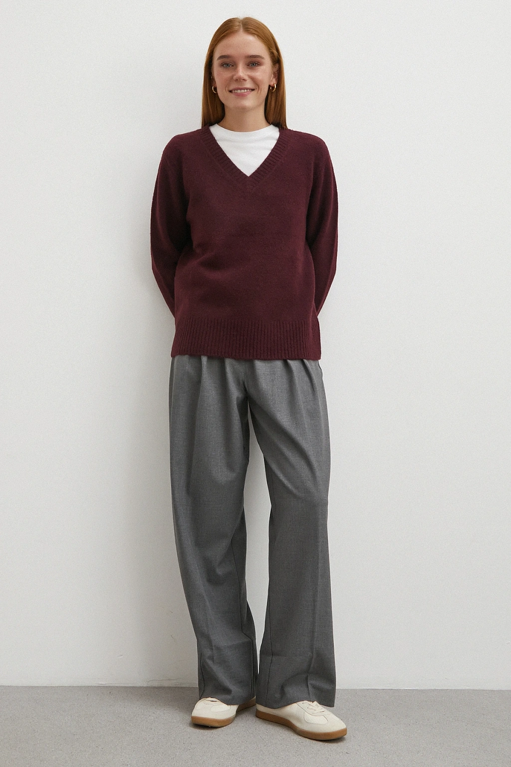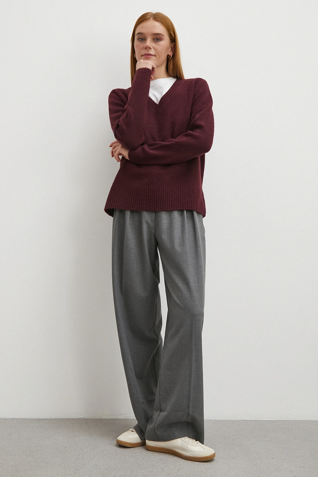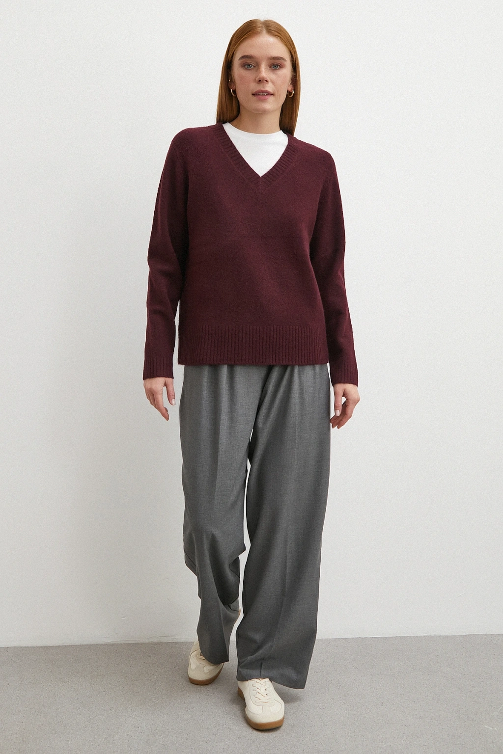 Çizgi Detaylı Geniş Paça Beli Lastikli Pantolon Bordo