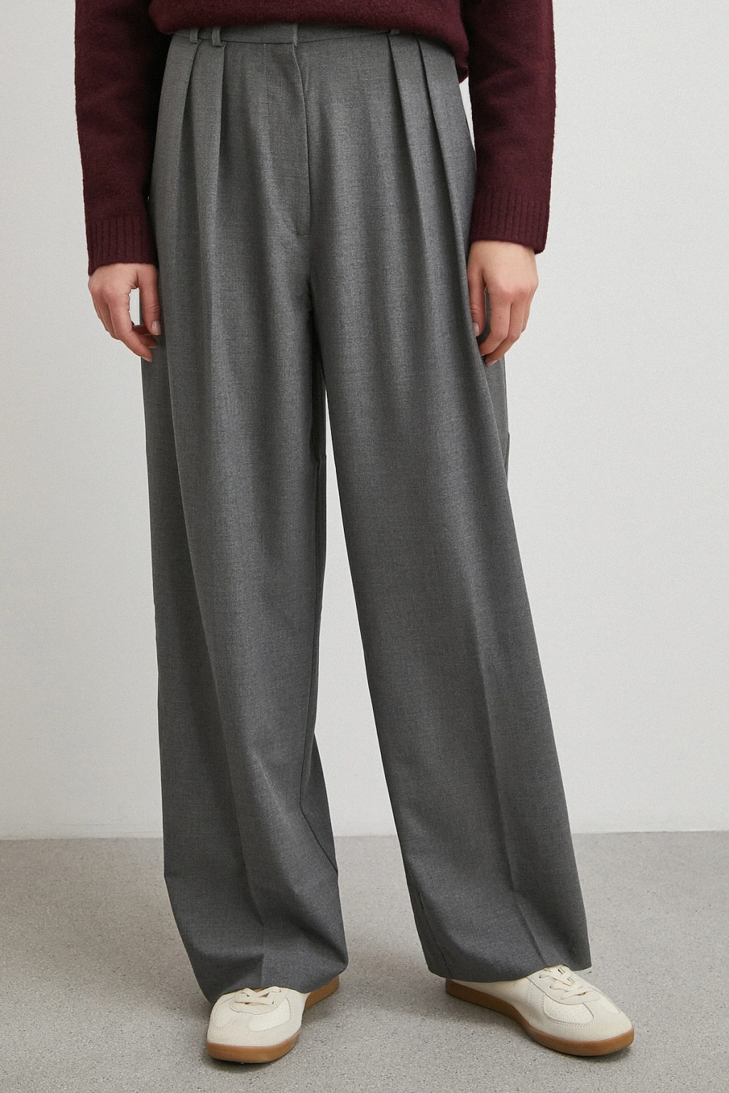 Yüksek Bel Pileli Palazzo Pantolon Gri