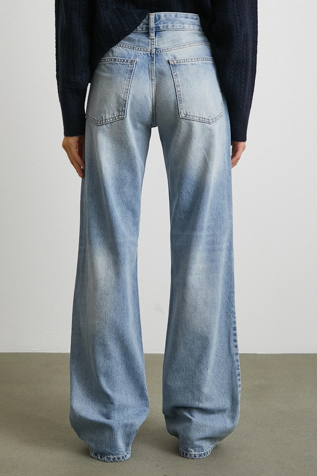 Yüksek Bel Geniş Paça Beş Cepli Jean Mavi