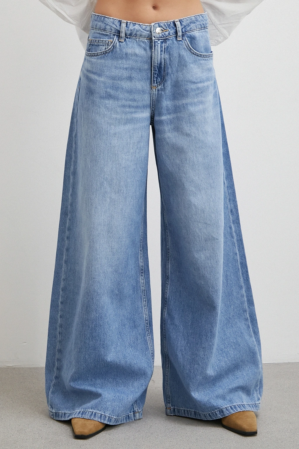 Düşük Bel Wide Leg Jean Mavi